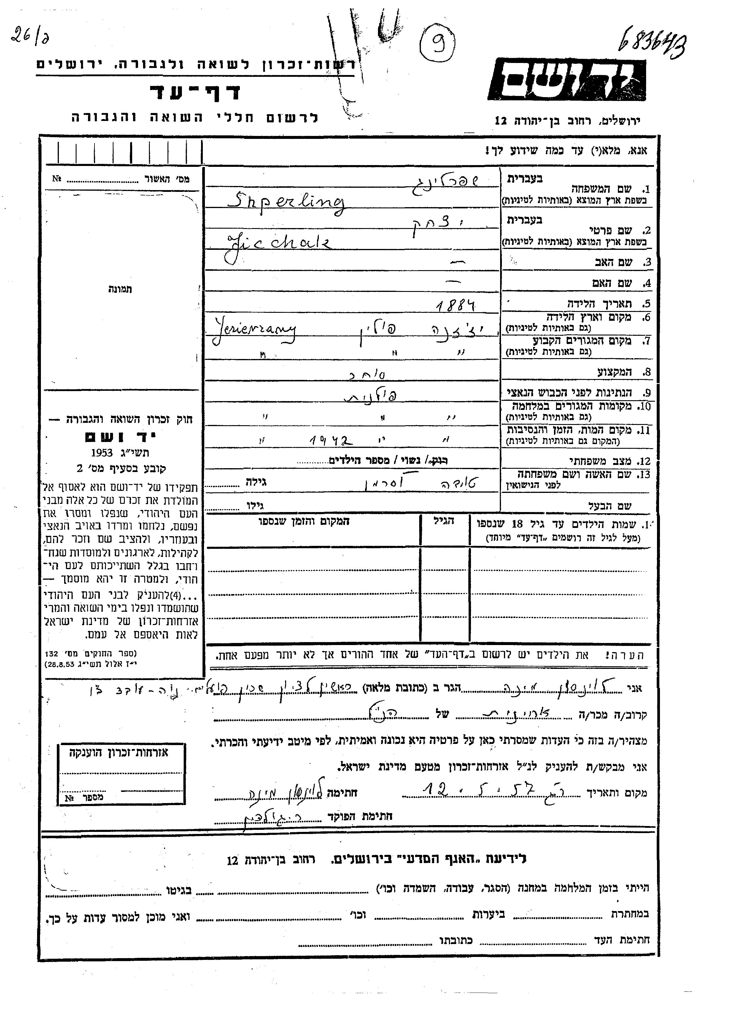 Шперлинг Ицхак 1884 Езерна, Польша Лист свидетельских показаний