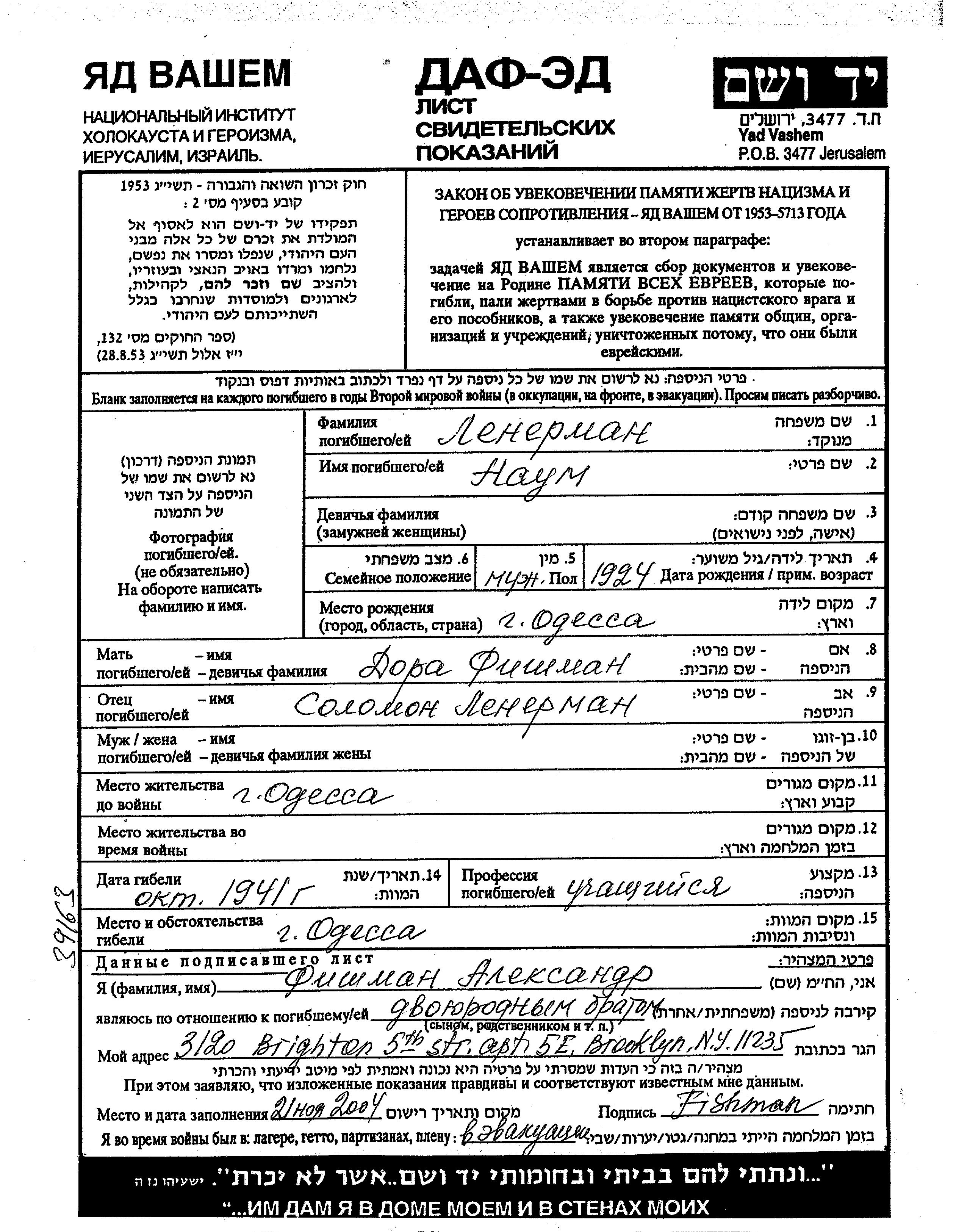 Поиск подателя Листа свидетельских показаний. Поиск по любому имени, включая уменьшительное или прозвище