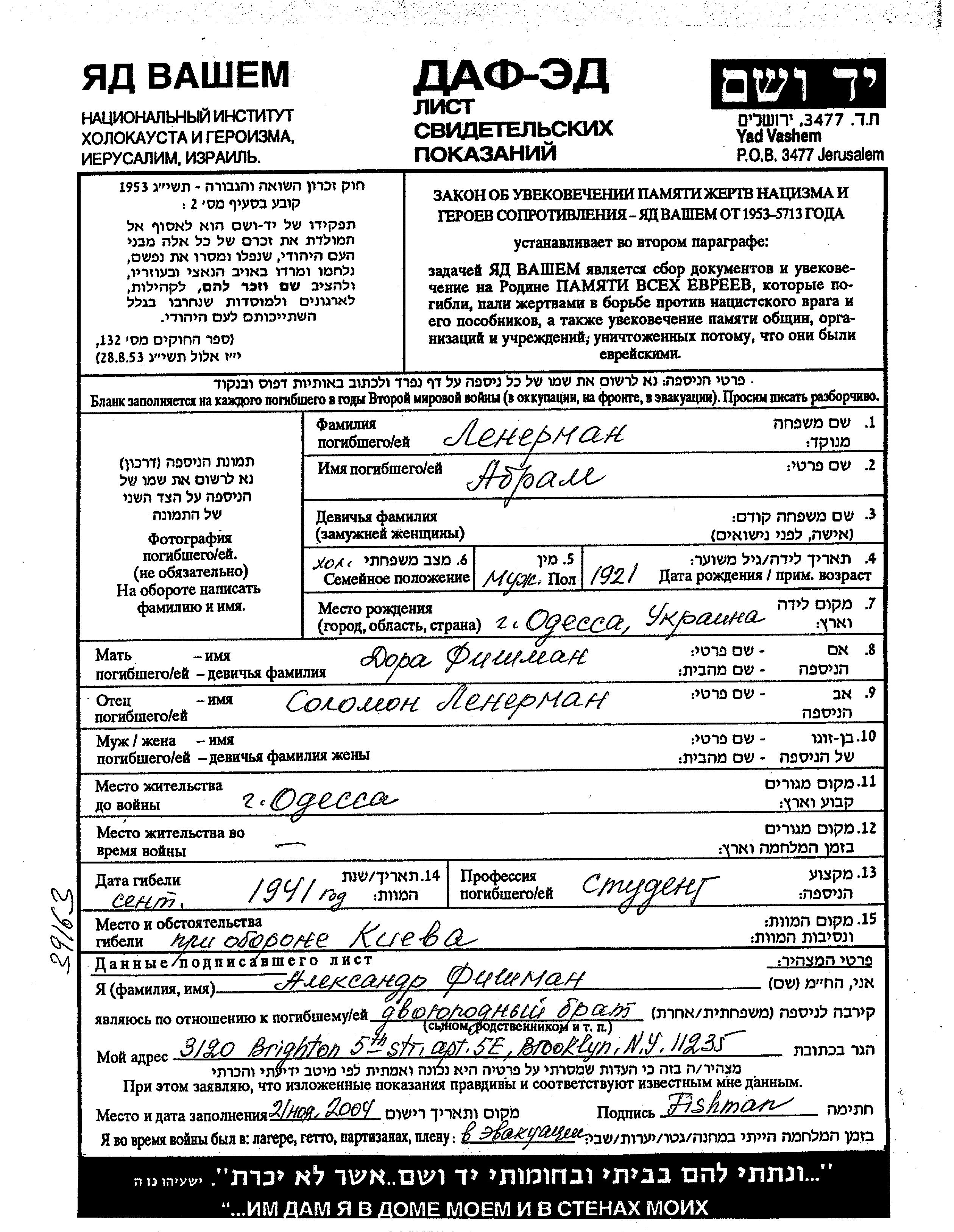 Поиск подателя Листа свидетельских показаний. Поиск по любому имени, включая уменьшительное или прозвище