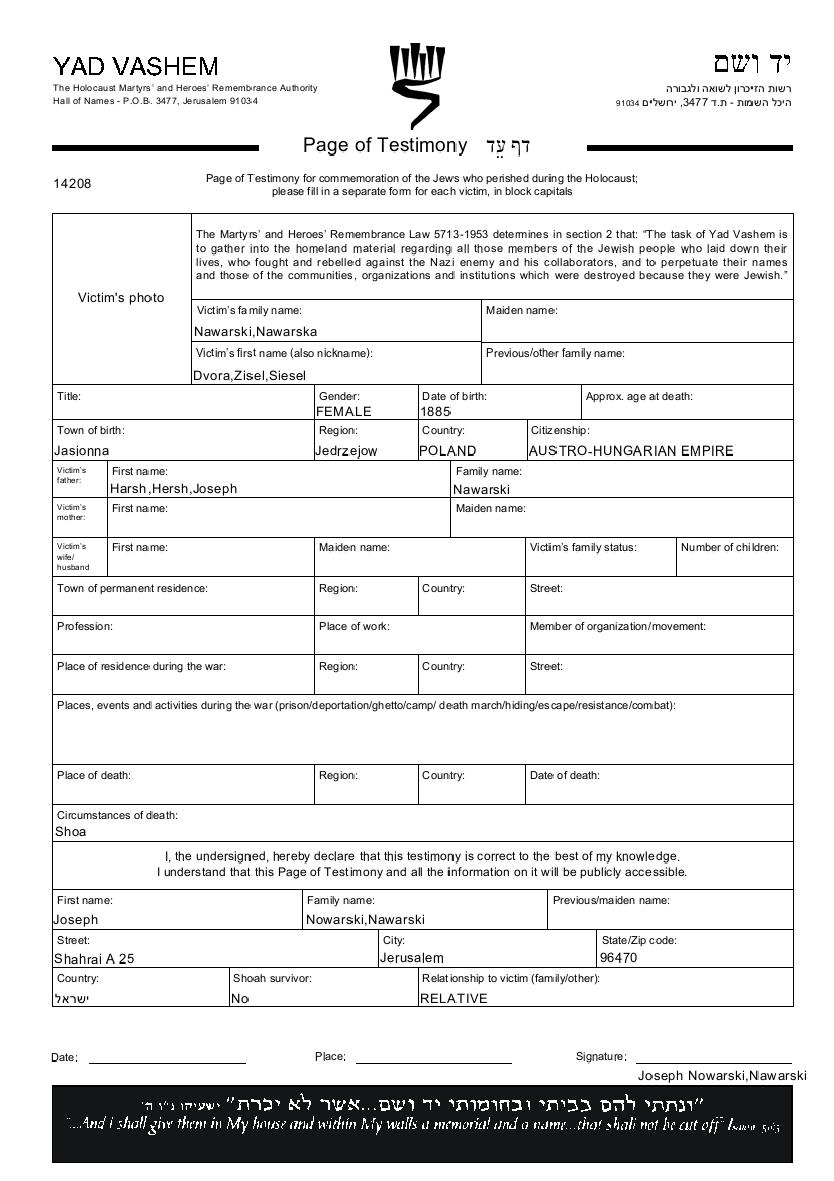 Яд Вашем - Листы свидетельских показаний Мемориального фонда