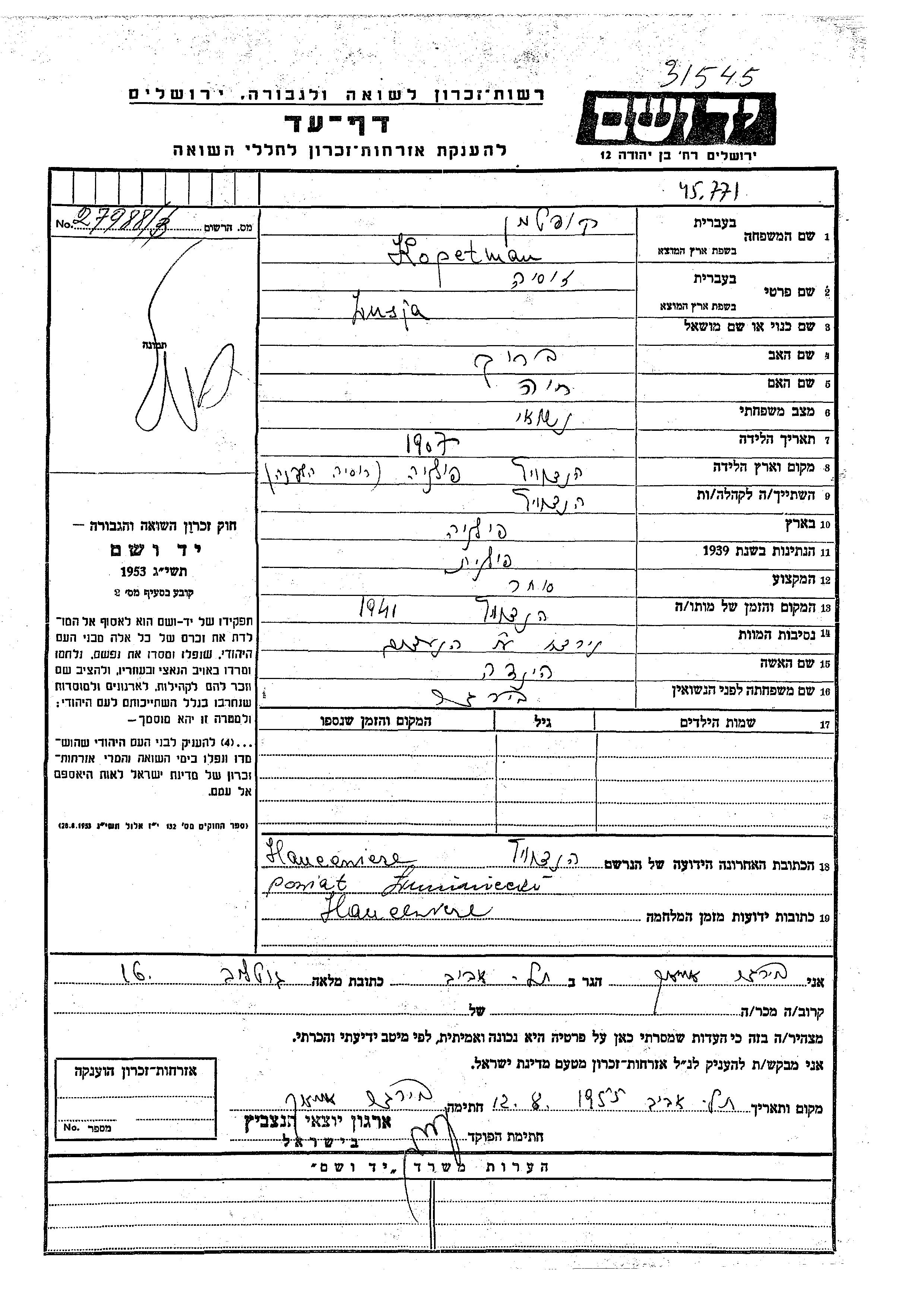 Яд Вашем - Листы свидетельских показаний Мемориального фонда