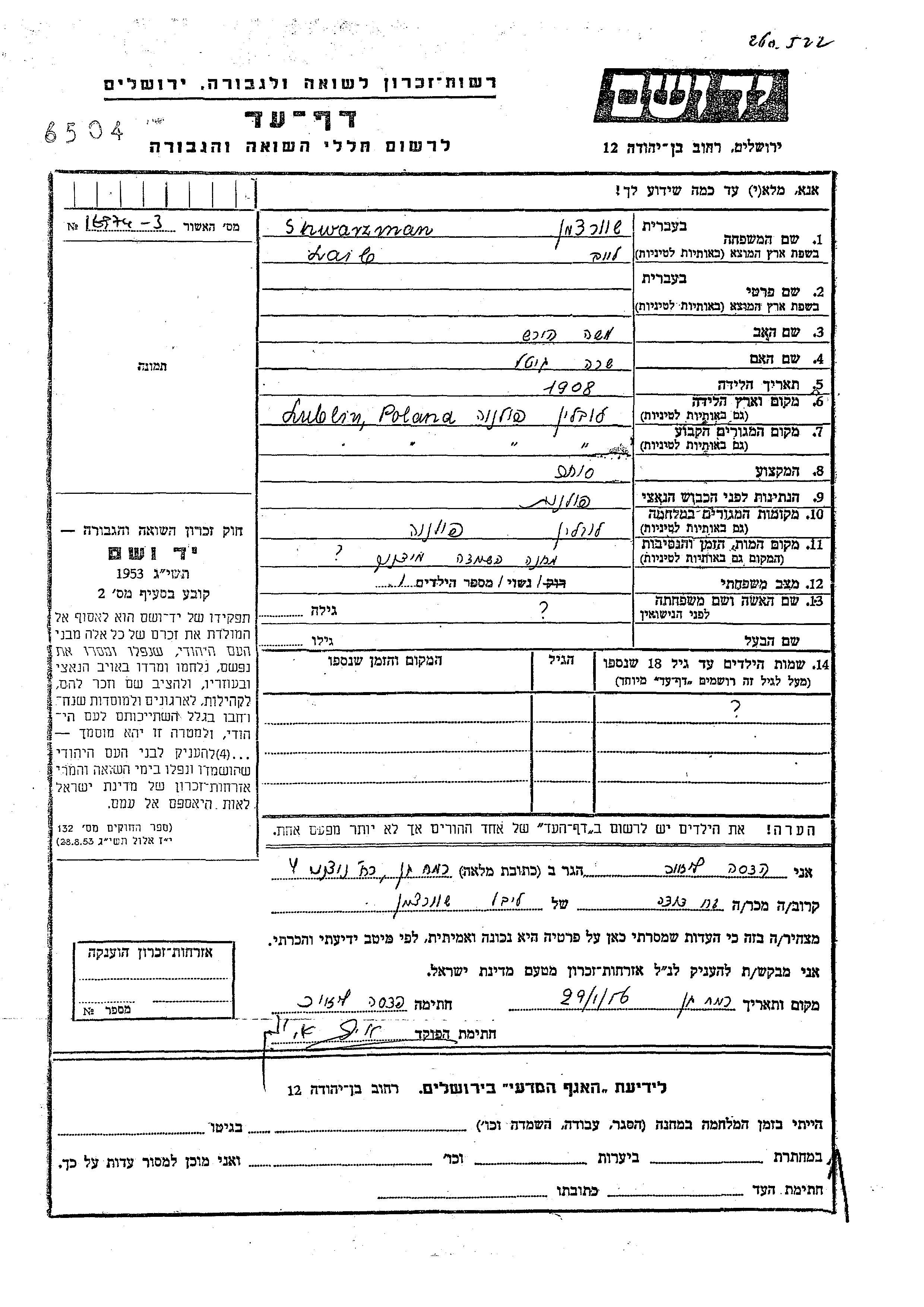 Шварцман Лайб 1908 Люблин, Польша Лист свидетельских показаний