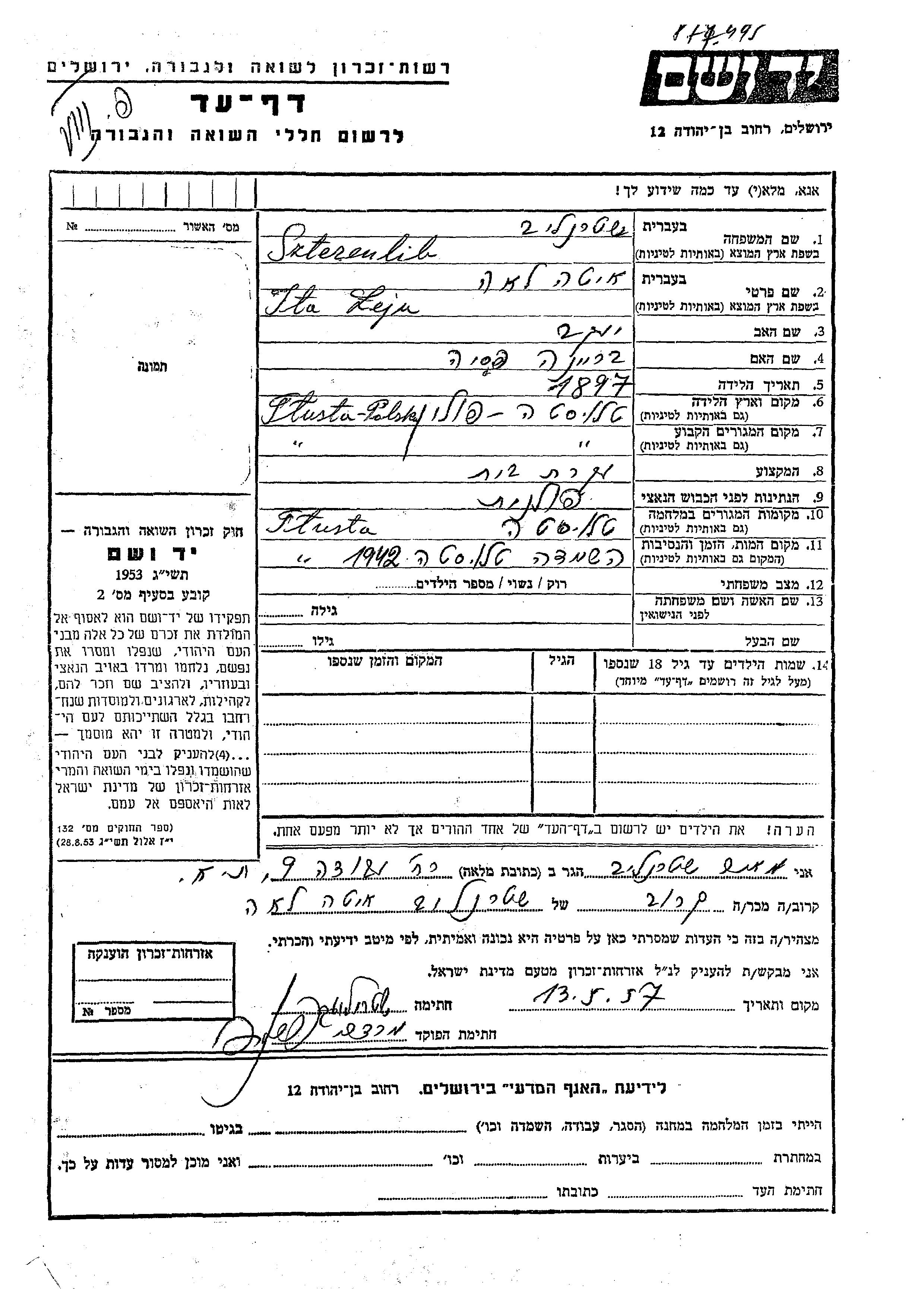 Яд Вашем - Листы свидетельских показаний Мемориального фонда