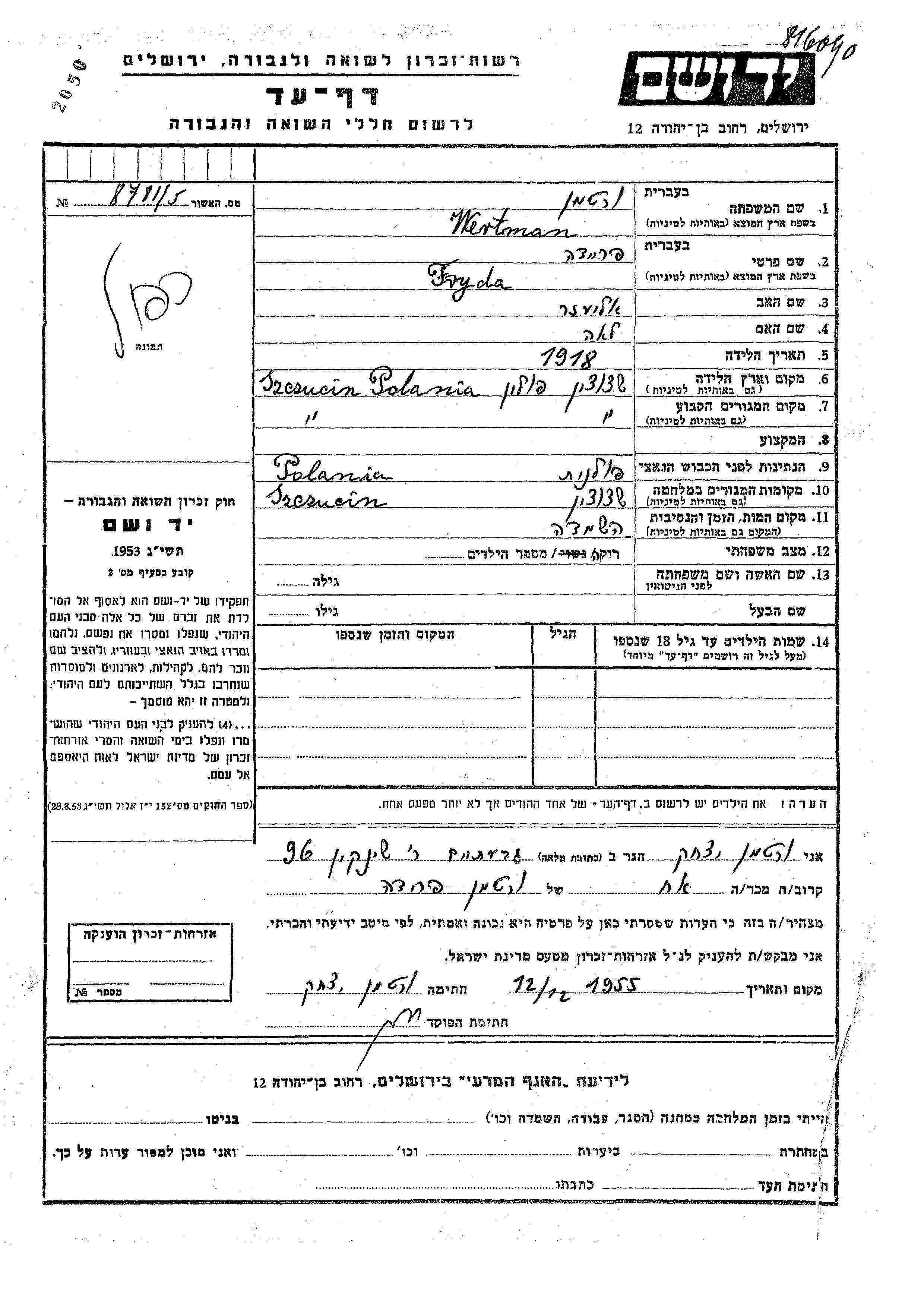 Яд Вашем - Листы свидетельских показаний Мемориального фонда