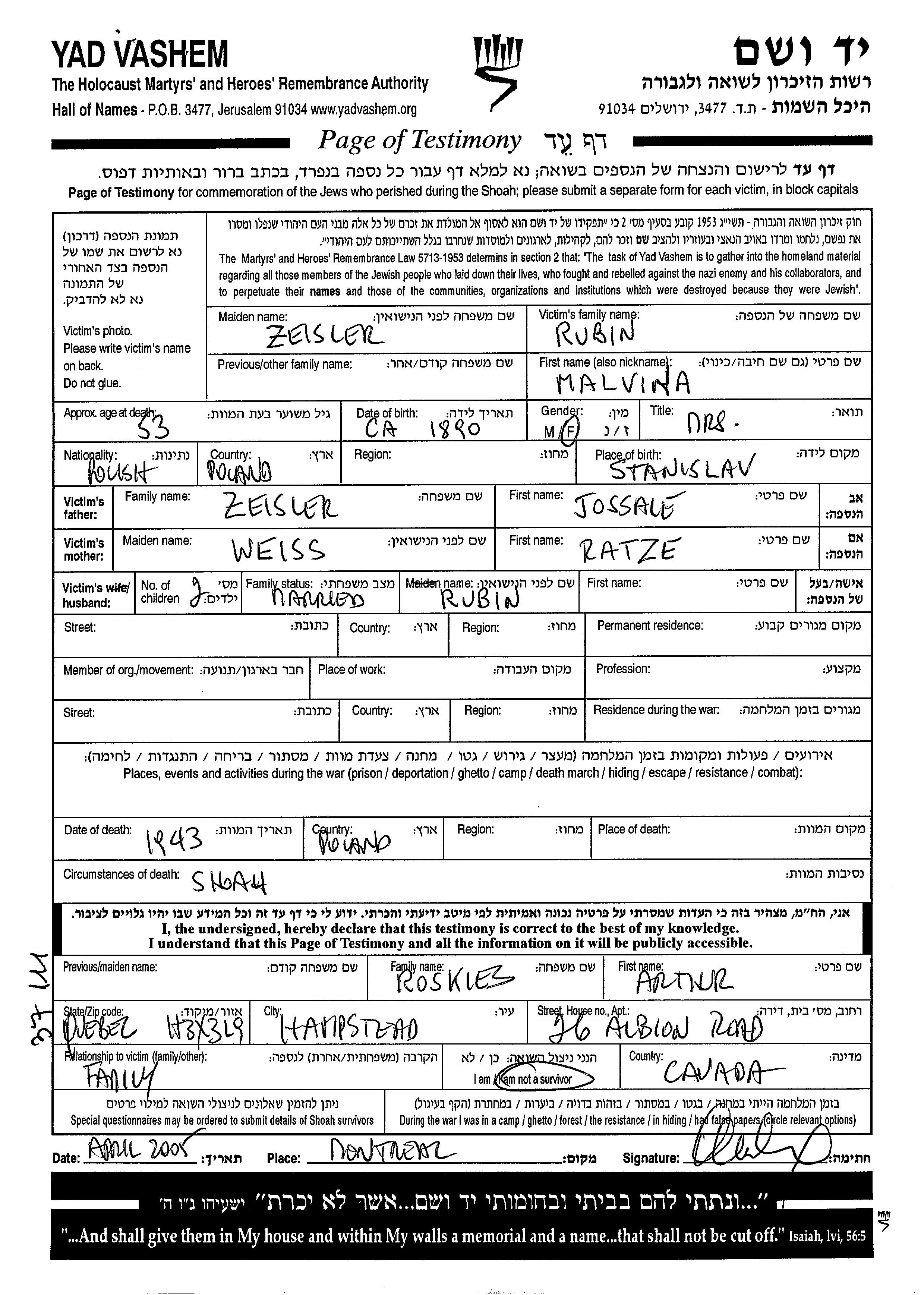 Во время Шоа евреев уничтожали разными способами: газовые камеры, расстрелы, их заживо хоронили или сжигали, непосильным принудительным трудом, голодом, эпидемиями, отсутствием минимальных гигиенических условий и медицинского обслуживания, и т.д. Некоторые евреи добровольно расстались со своей жизнью, чтобы избежать ареста и дальнейших преследований или чтобы покончить с безысходностью и бесконечными страданиями. Десятки тысяч еврейских солдат, служивших в Советской армии и попавших в плен, , были отобраны как евреи и убиты. Многие были зарегистрированы как «пропавшие без вести».
