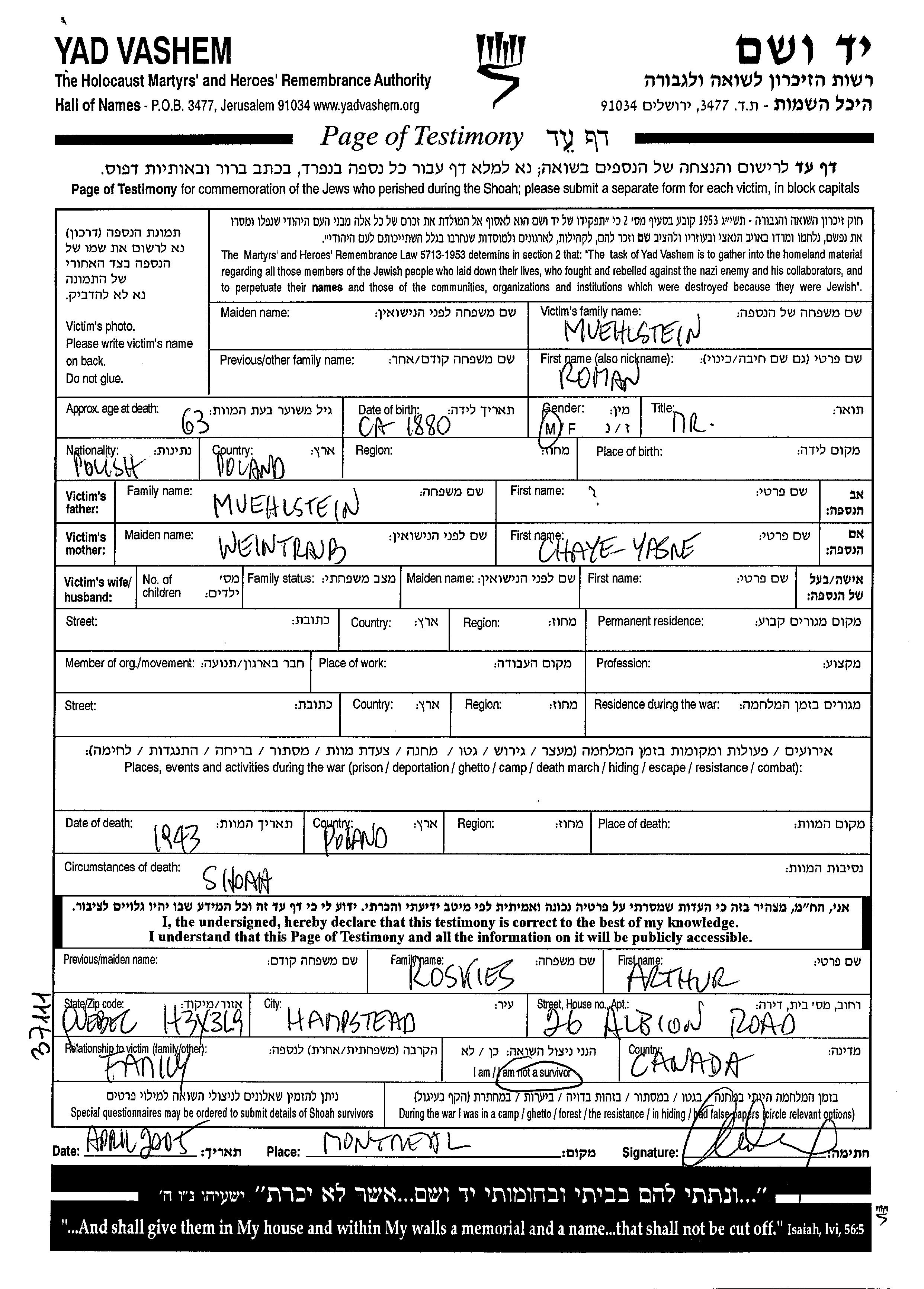 Яд Вашем - Листы свидетельских показаний Мемориального фонда