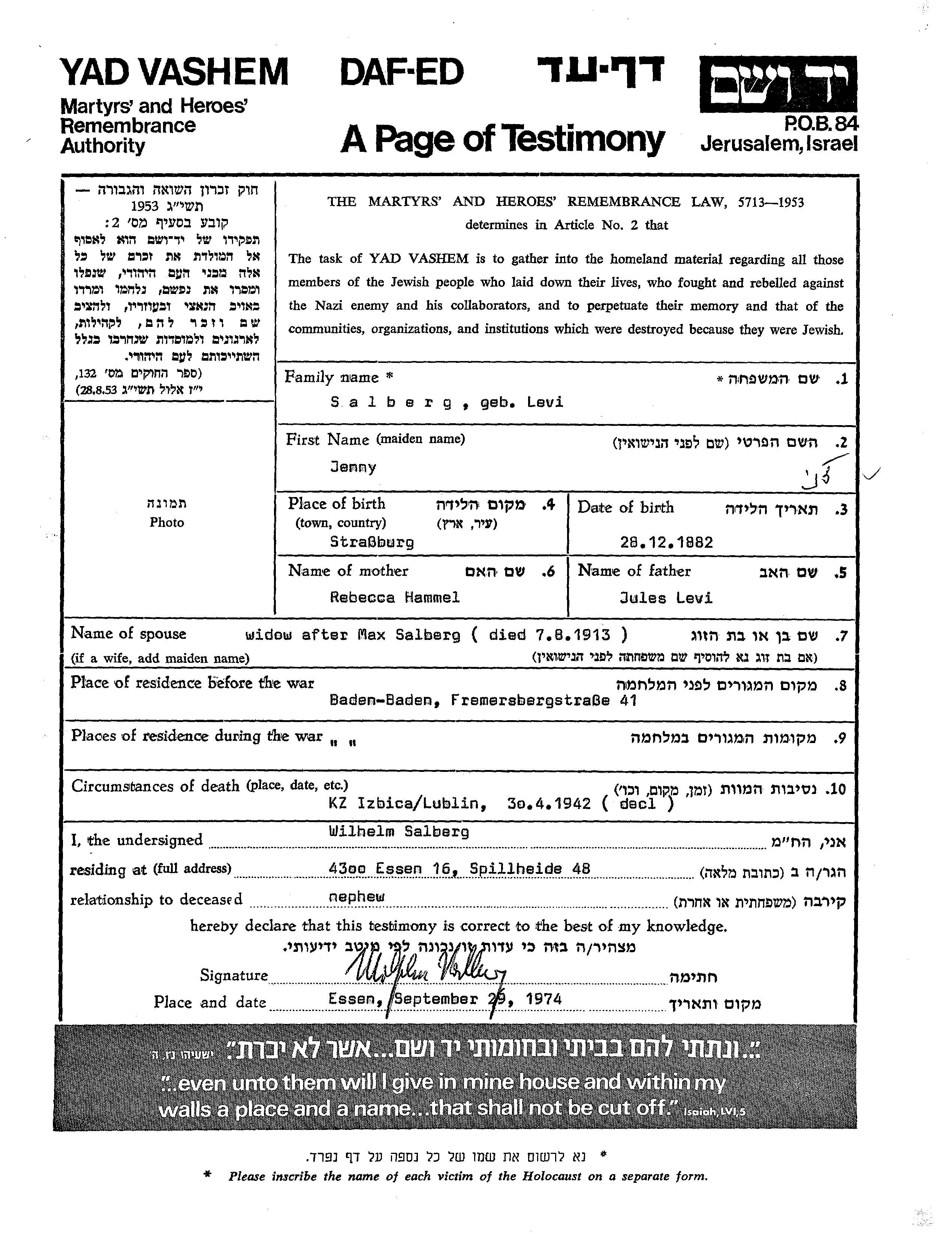 Во время Шоа евреев уничтожали разными способами: газовые камеры, расстрелы, их заживо хоронили или сжигали, непосильным принудительным трудом, голодом, эпидемиями, отсутствием минимальных гигиенических условий и медицинского обслуживания, и т.д. Некоторые евреи добровольно расстались со своей жизнью, чтобы избежать ареста и дальнейших преследований или чтобы покончить с безысходностью и бесконечными страданиями. Десятки тысяч еврейских солдат, служивших в Советской армии и попавших в плен, , были отобраны как евреи и убиты. Многие были зарегистрированы как «пропавшие без вести».