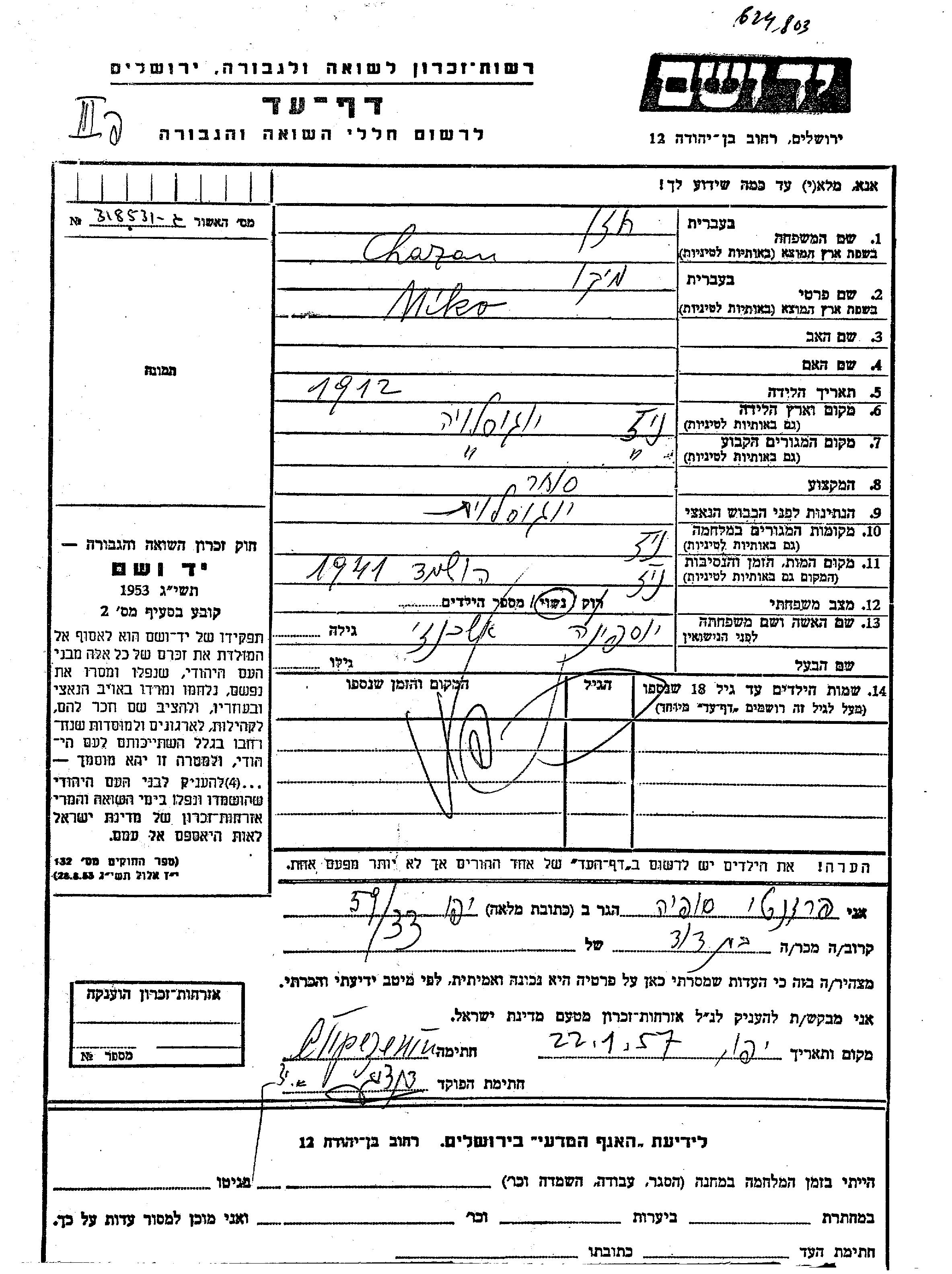 Яд Вашем - Листы свидетельских показаний Мемориального фонда