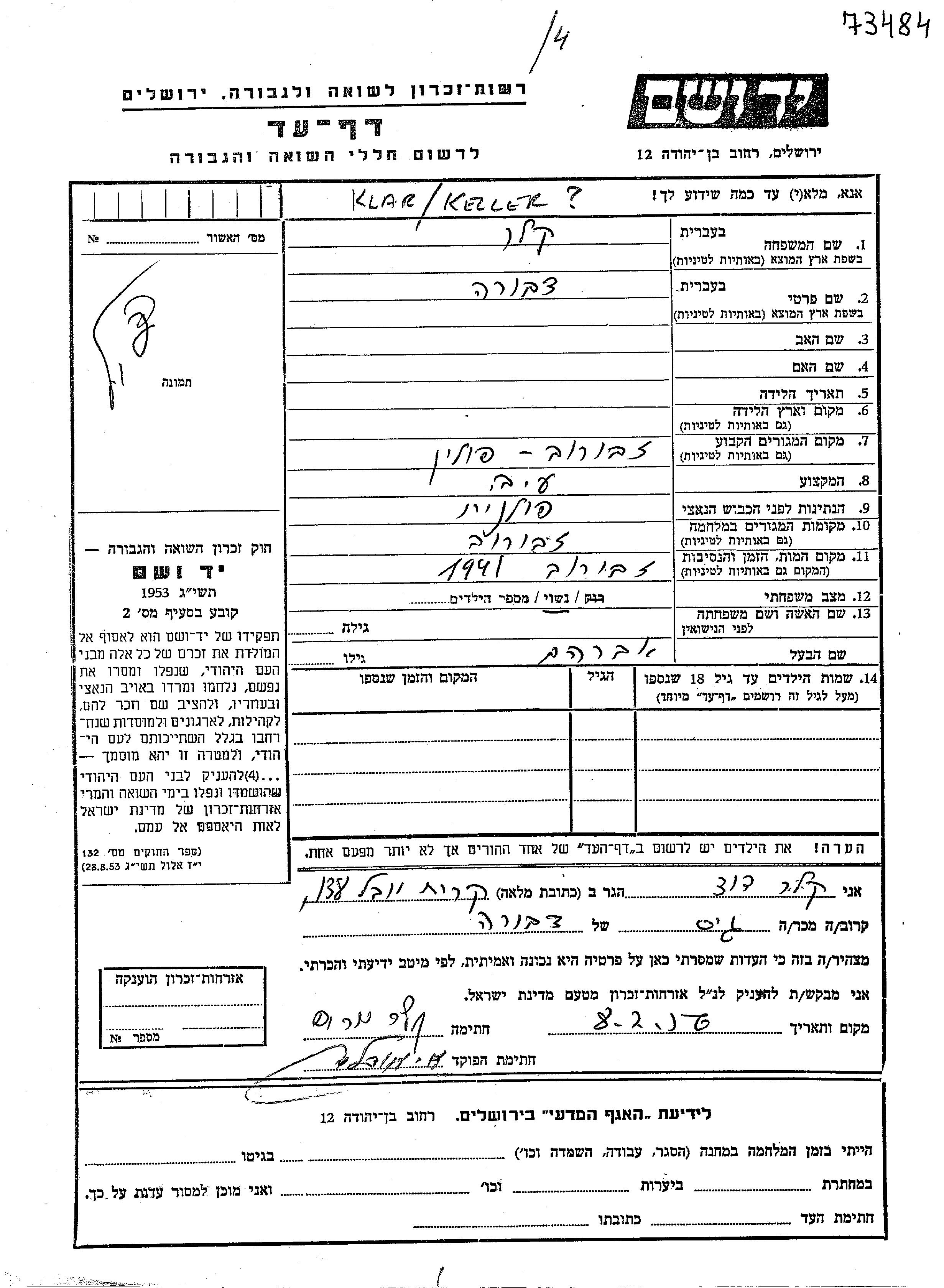 Двора Клар Келлер. Домохозяйка. Женат / замужем. Место жительства до войны: Зборов, Польша. Место во время войны: Зборов, Польша.