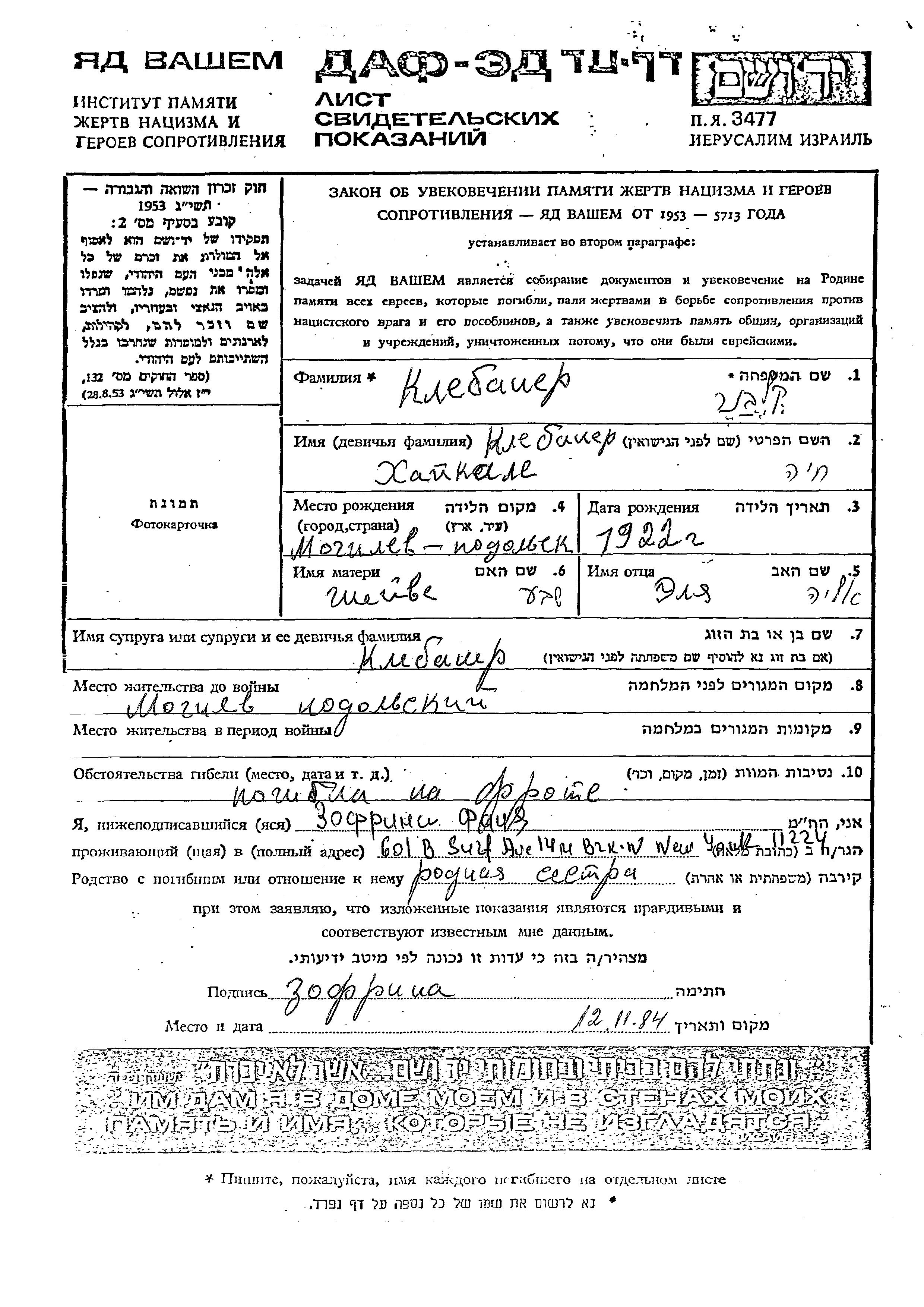 Поиск подателя Листа свидетельских показаний. Поиск по любому имени, включая уменьшительное или прозвище