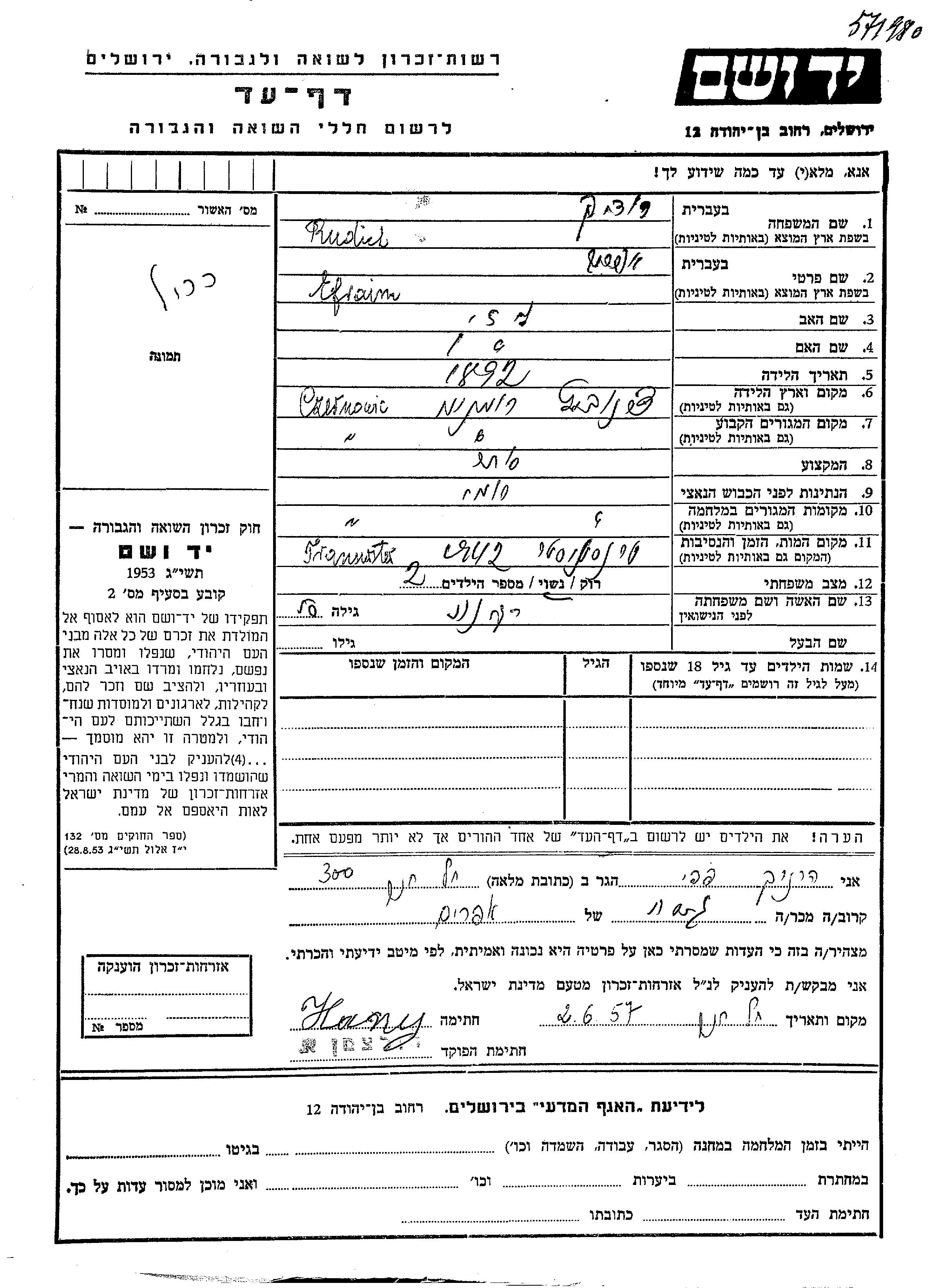 Яд Вашем - Листы свидетельских показаний Мемориального фонда