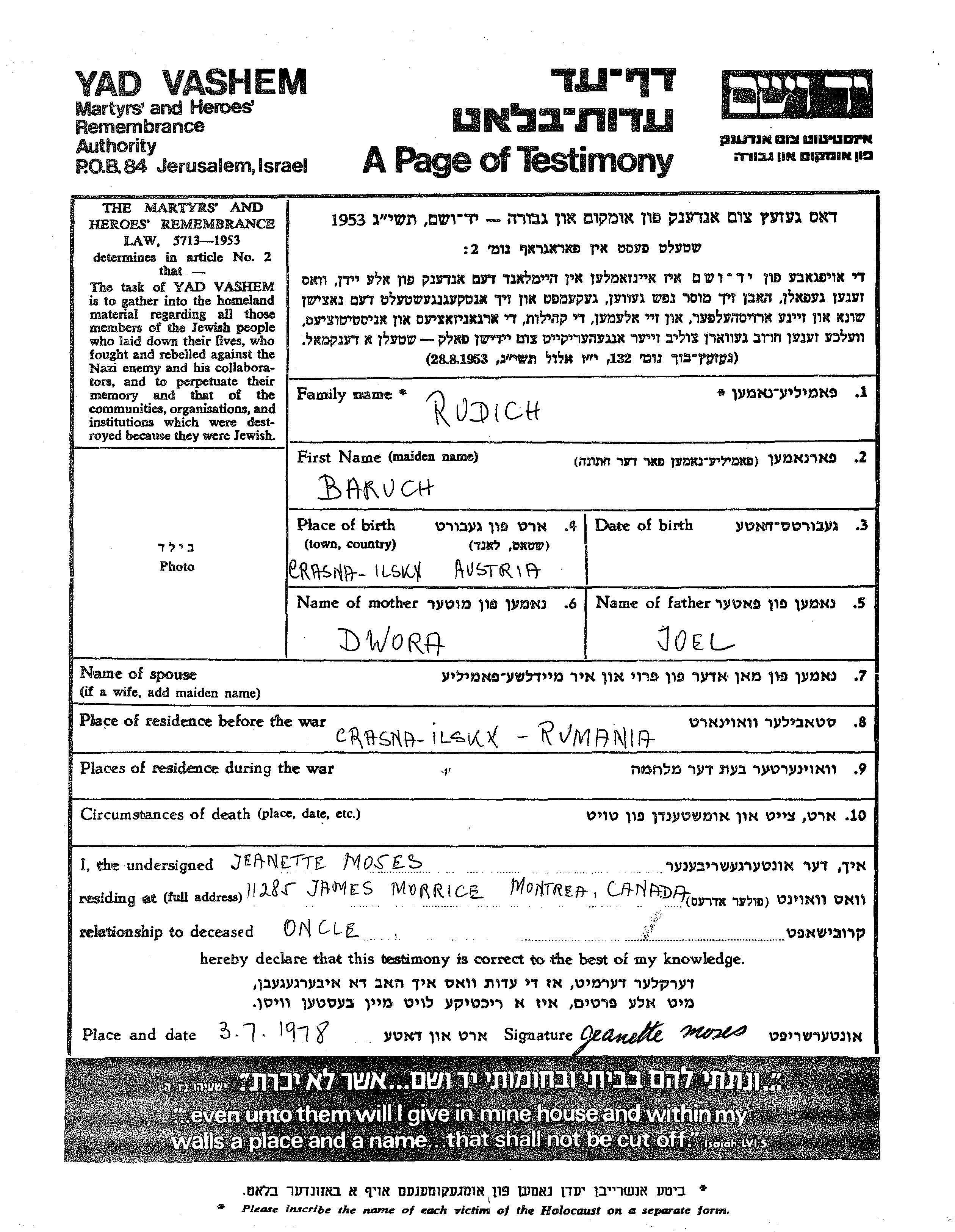 Во время Шоа евреев уничтожали разными способами: газовые камеры, расстрелы, их заживо хоронили или сжигали, непосильным принудительным трудом, голодом, эпидемиями, отсутствием минимальных гигиенических условий и медицинского обслуживания, и т.д. Некоторые евреи добровольно расстались со своей жизнью, чтобы избежать ареста и дальнейших преследований или чтобы покончить с безысходностью и бесконечными страданиями.
