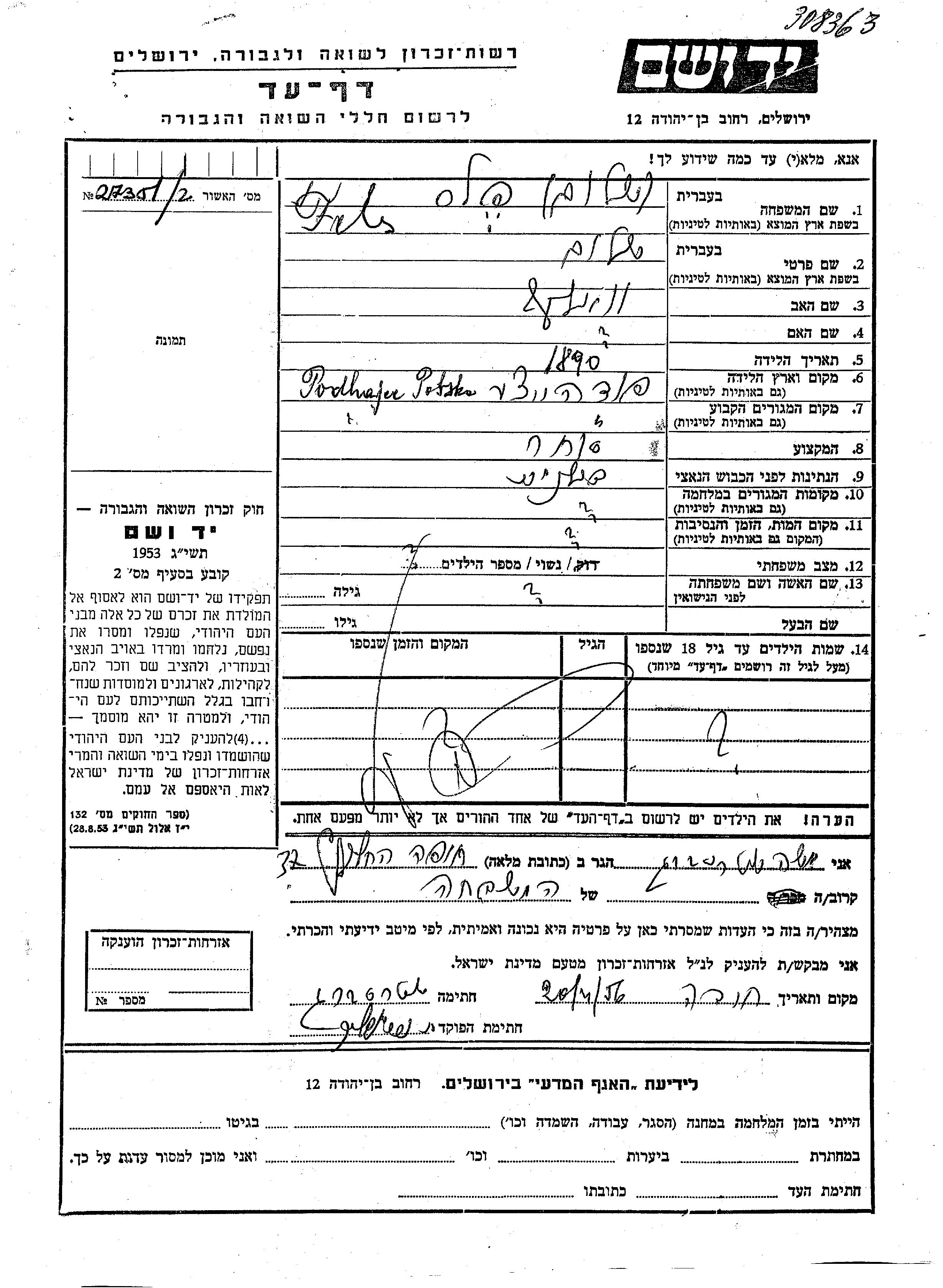 Яд Вашем - Листы свидетельских показаний Мемориального фонда