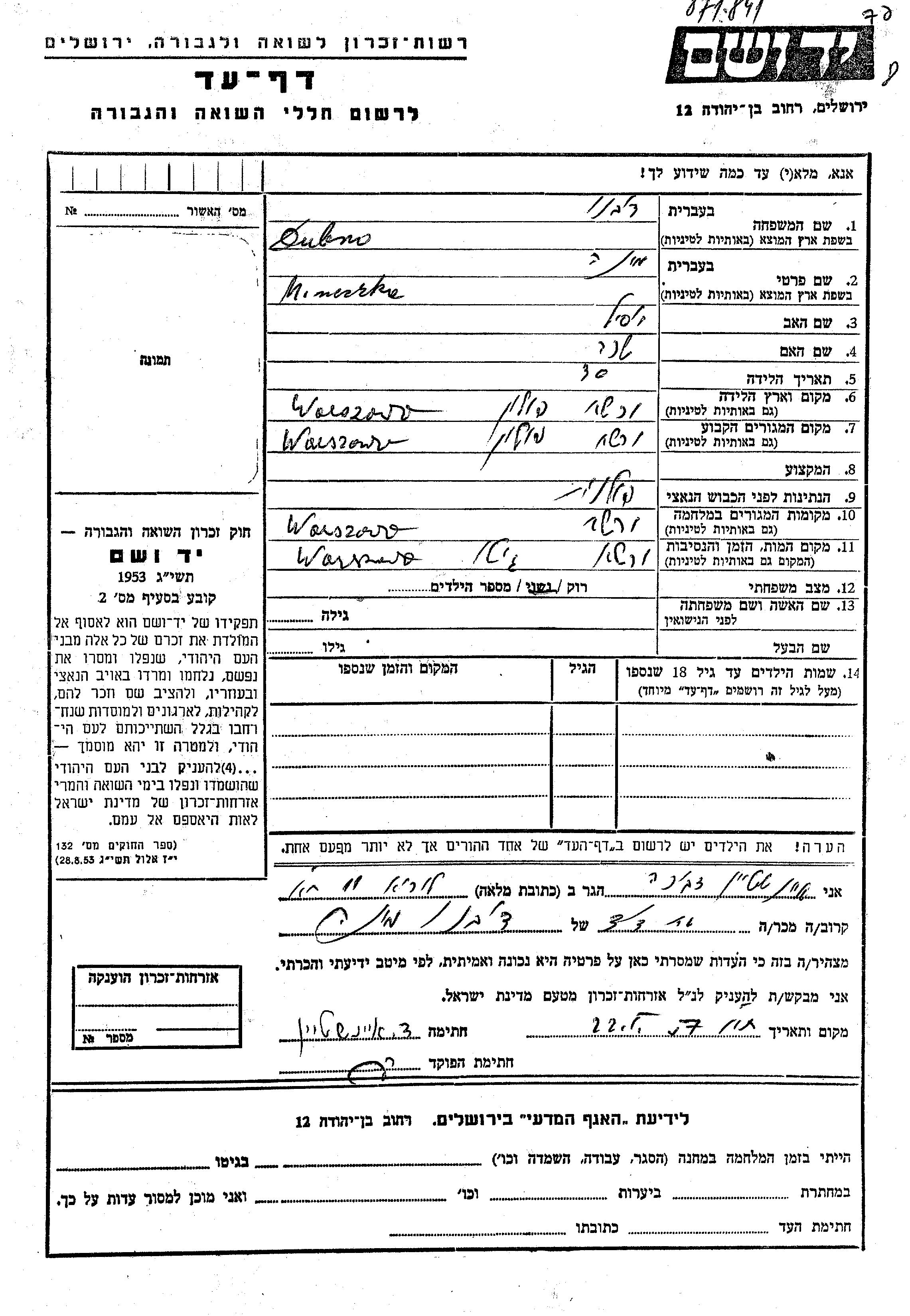 Яд Вашем - Листы свидетельских показаний Мемориального фонда