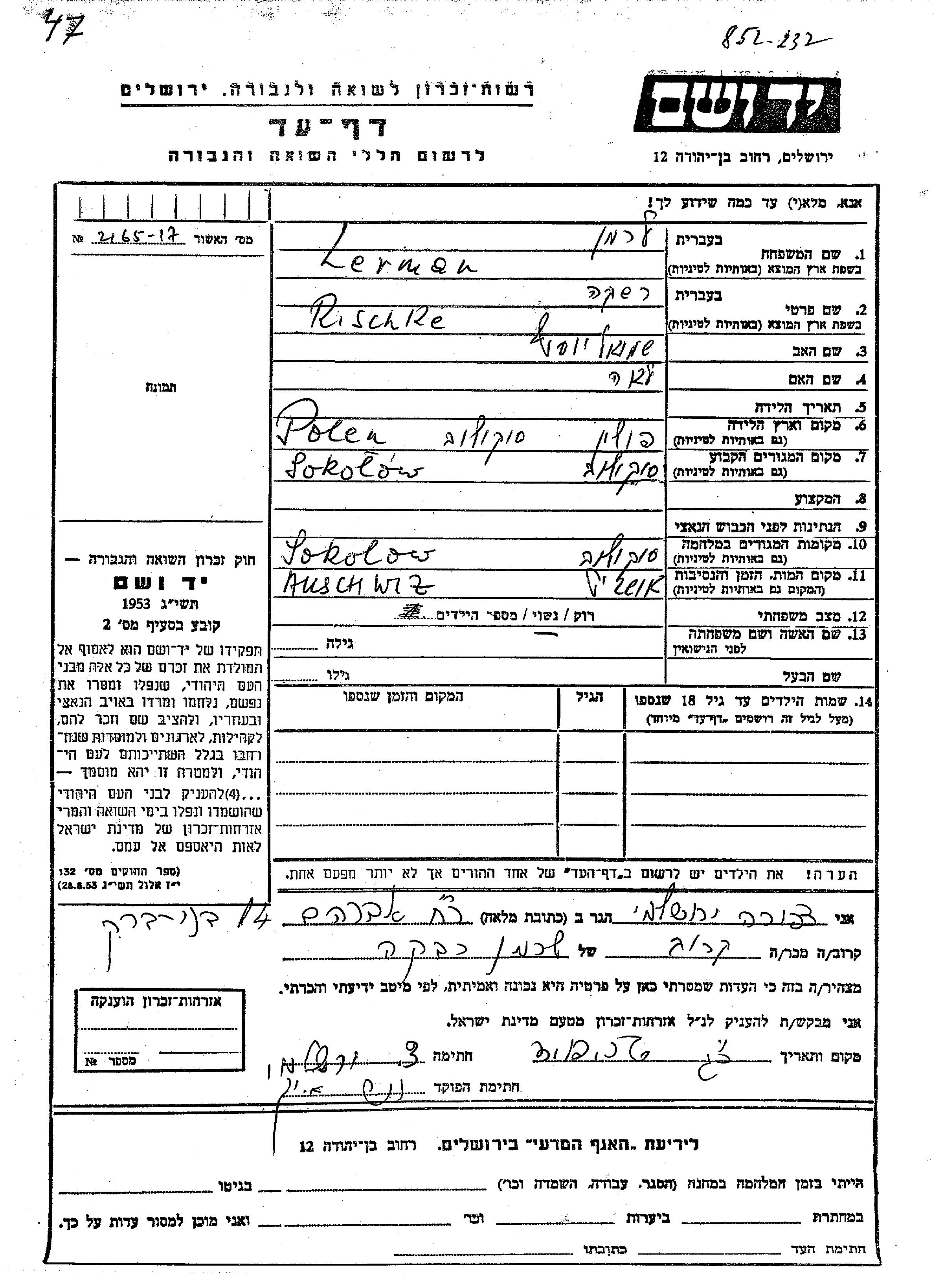 Яд Вашем - Листы свидетельских показаний Мемориального фонда