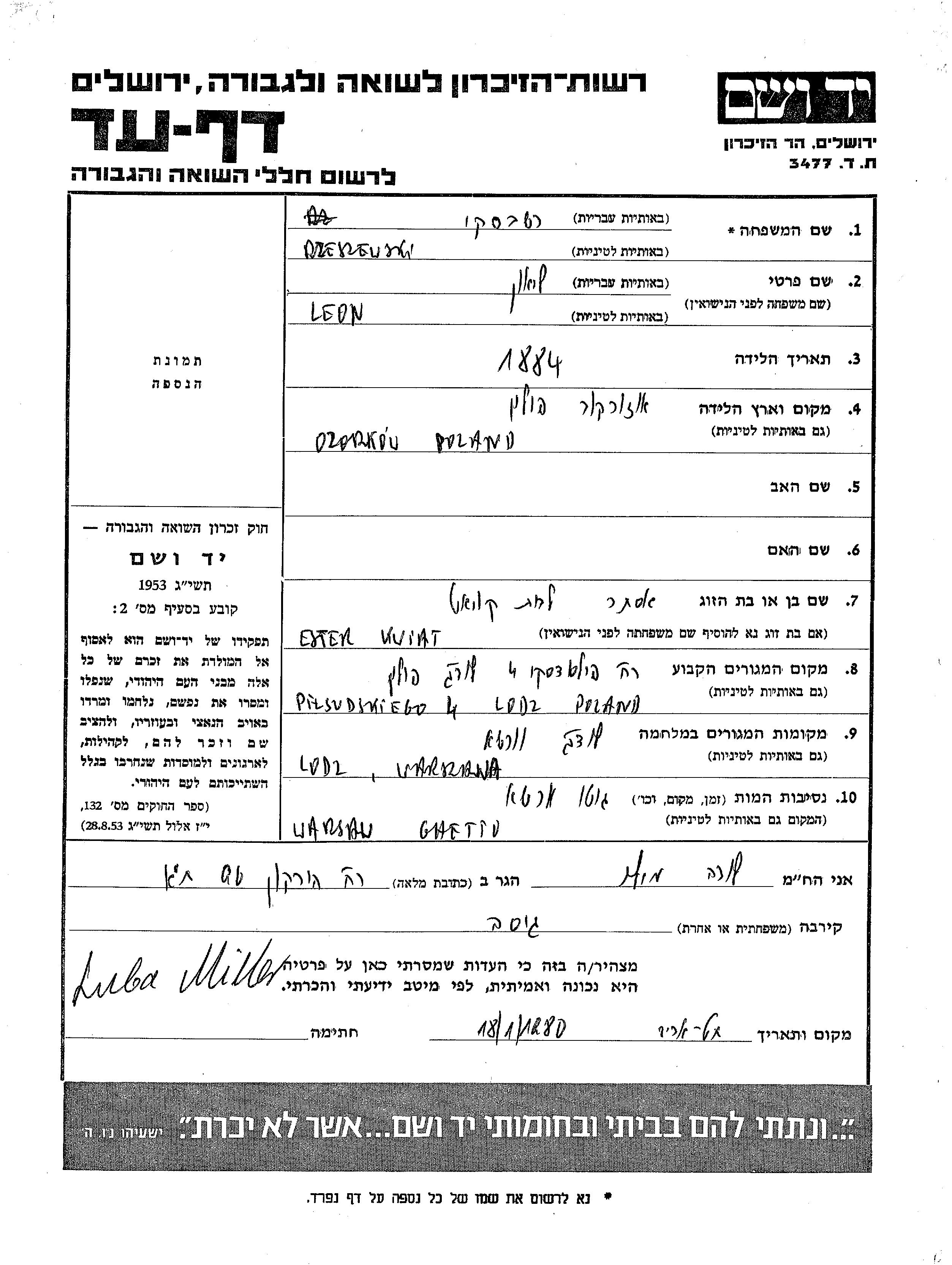 Яд Вашем - Листы свидетельских показаний Мемориального фонда