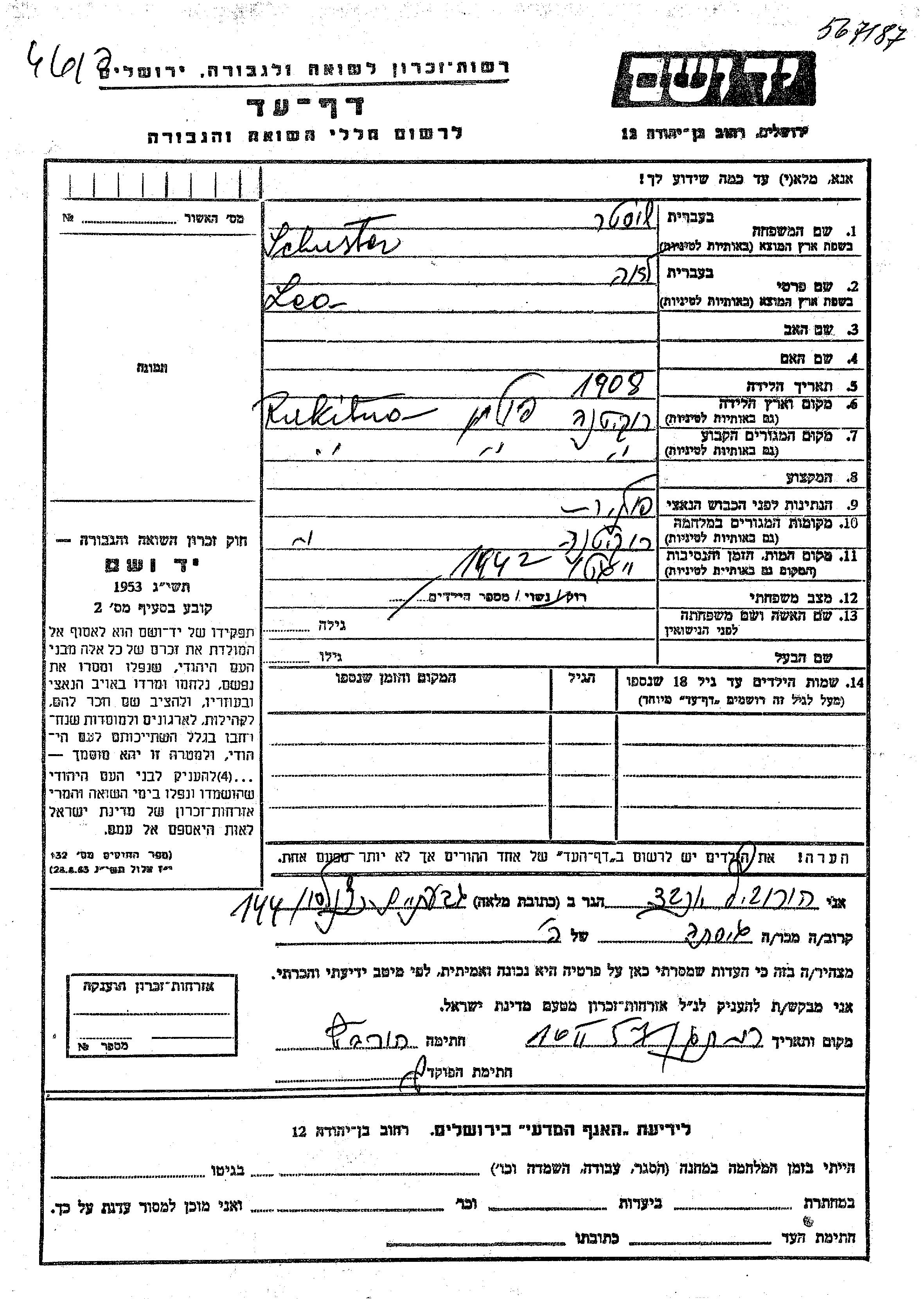 Яд Вашем - Листы свидетельских показаний Мемориального фонда