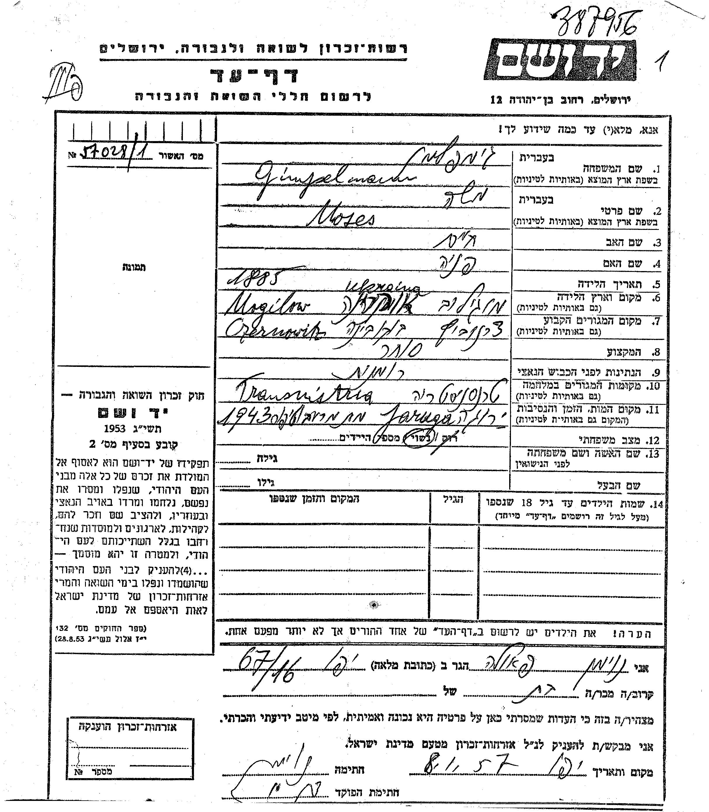Яд Вашем - Листы свидетельских показаний Мемориального фонда