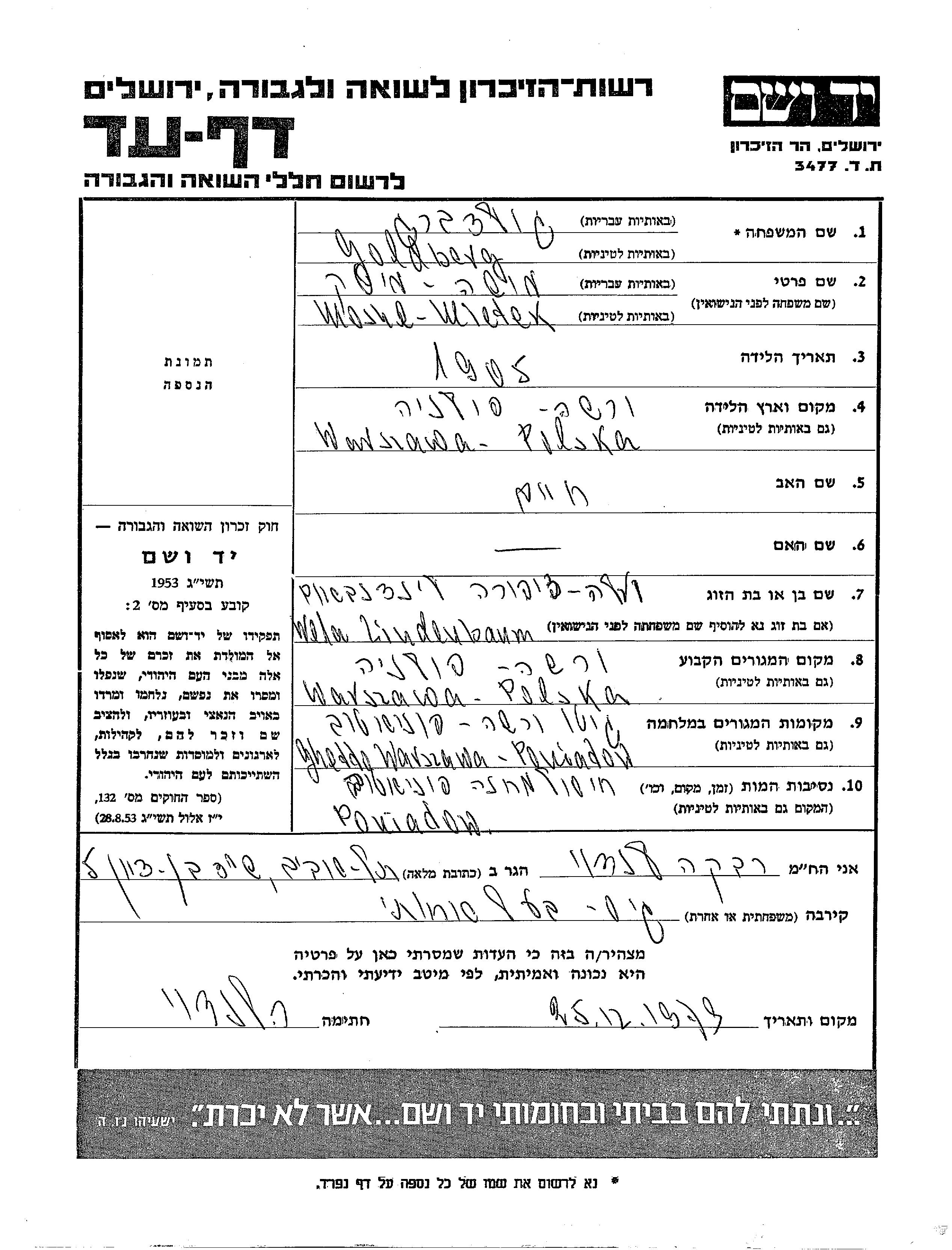 Яд Вашем - Листы свидетельских показаний Мемориального фонда