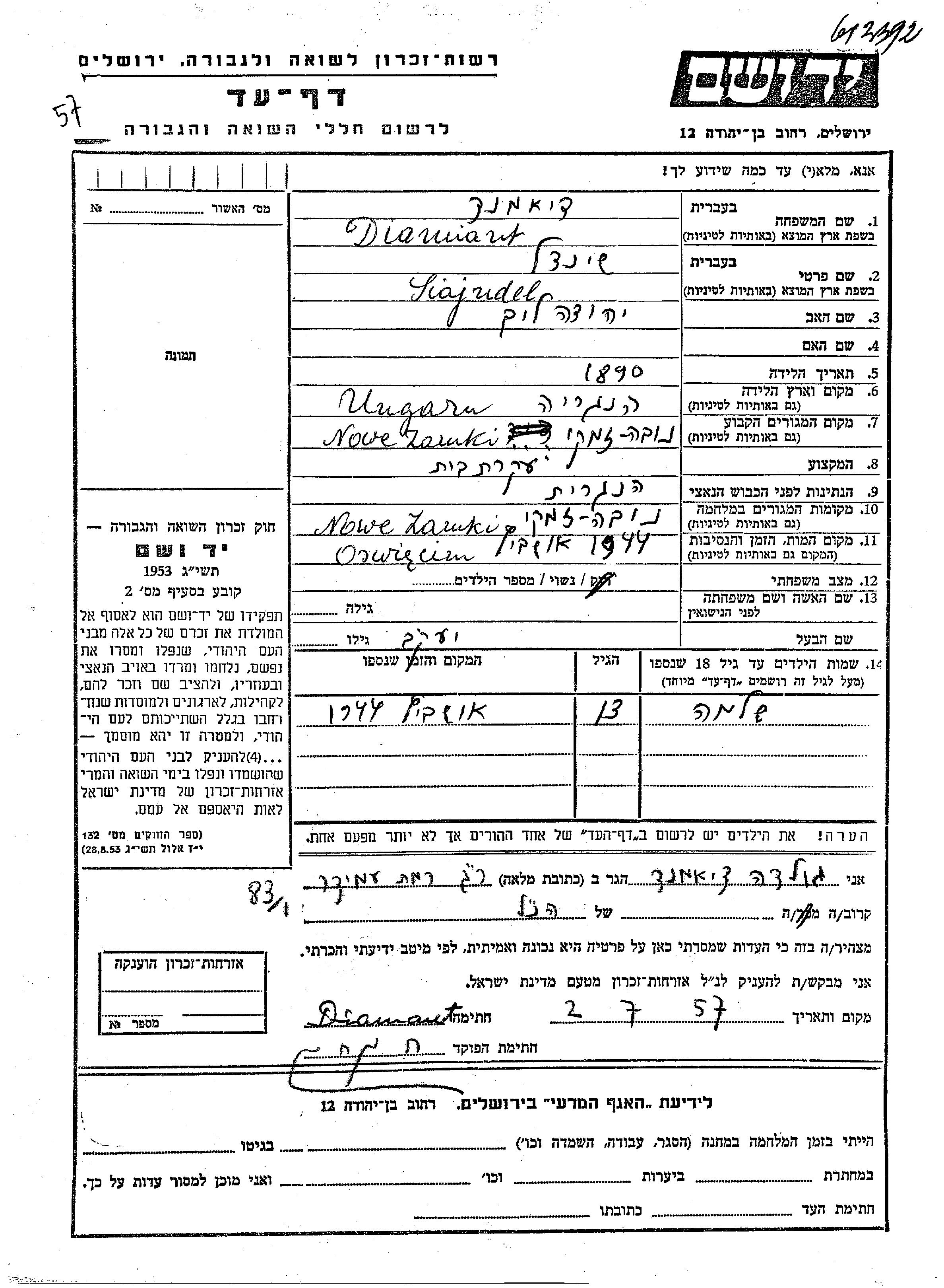 Яд Вашем - Листы свидетельских показаний Мемориального фонда