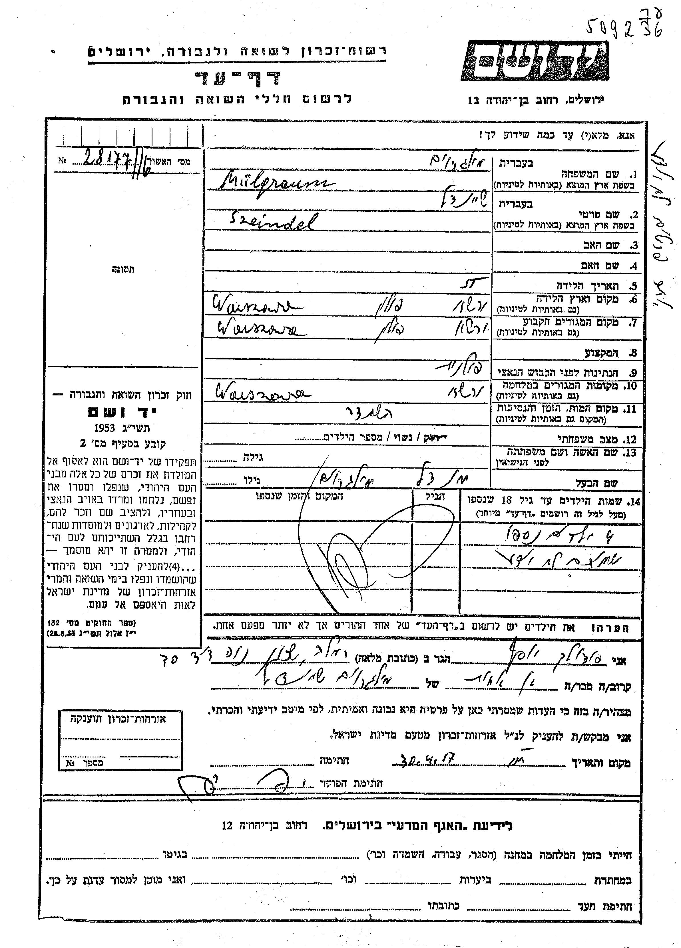 Мильграум Шейндел Варшава, Польша Лист свидетельских показаний