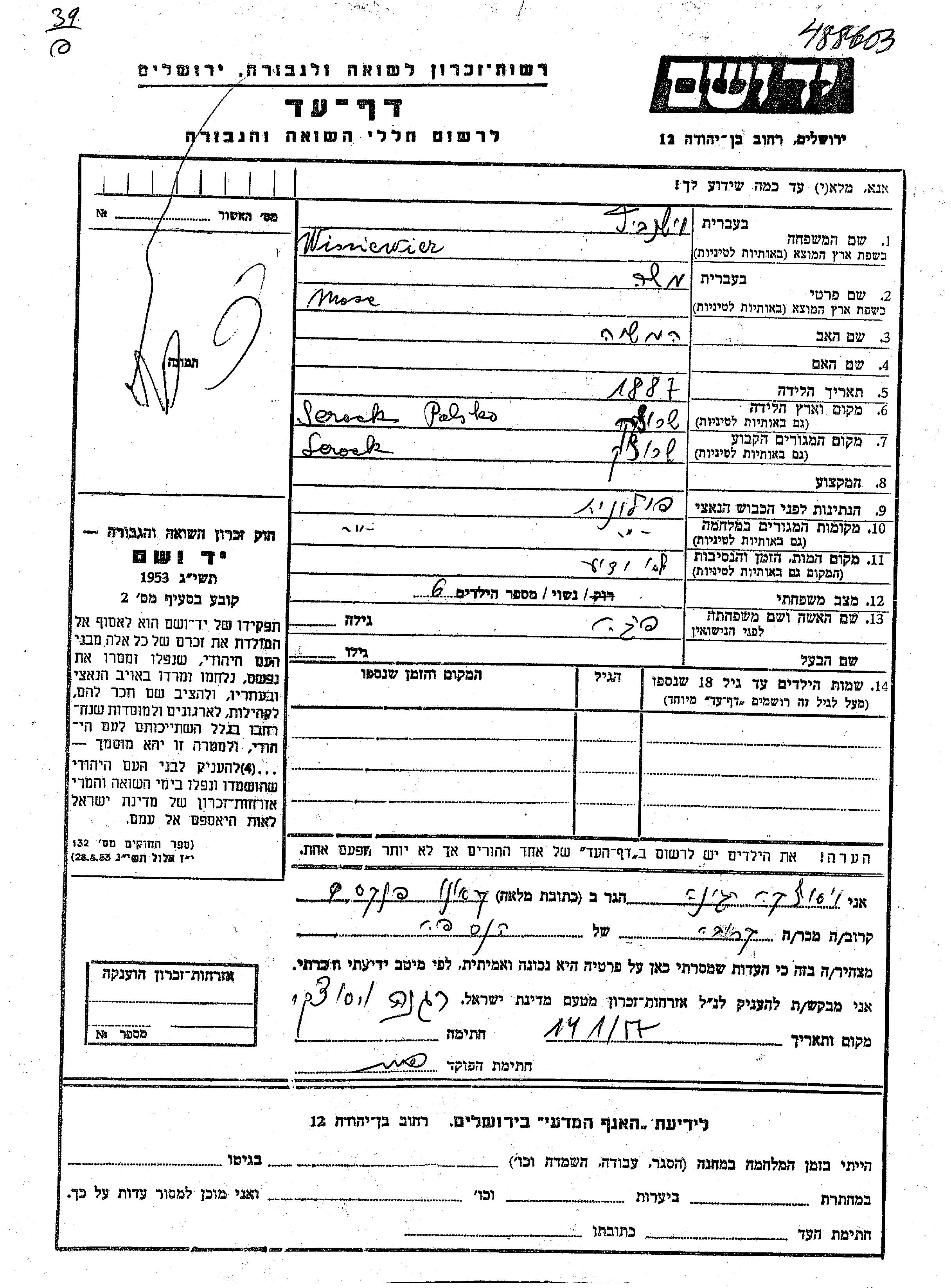 Яд Вашем - Листы свидетельских показаний Мемориального фонда