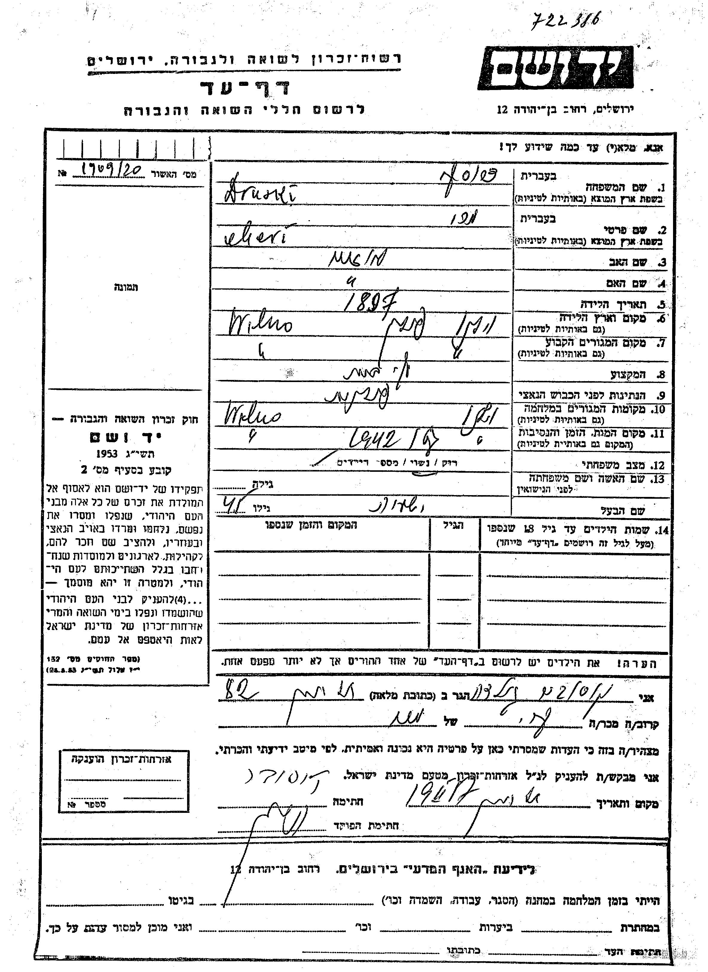 Яд Вашем - Листы свидетельских показаний Мемориального фонда