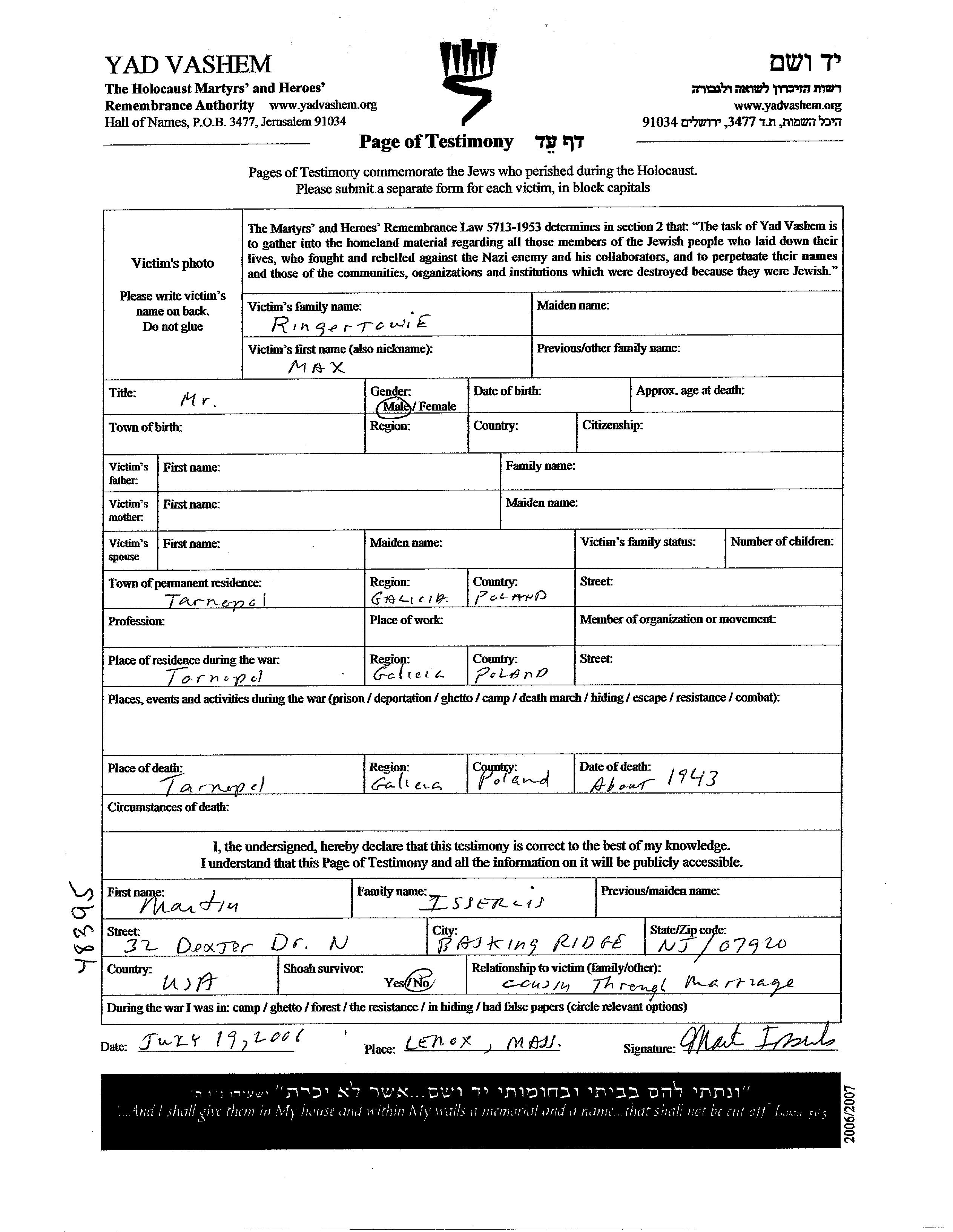 Поиск подателя Листа свидетельских показаний. Поиск по любому имени, включая уменьшительное или прозвище
