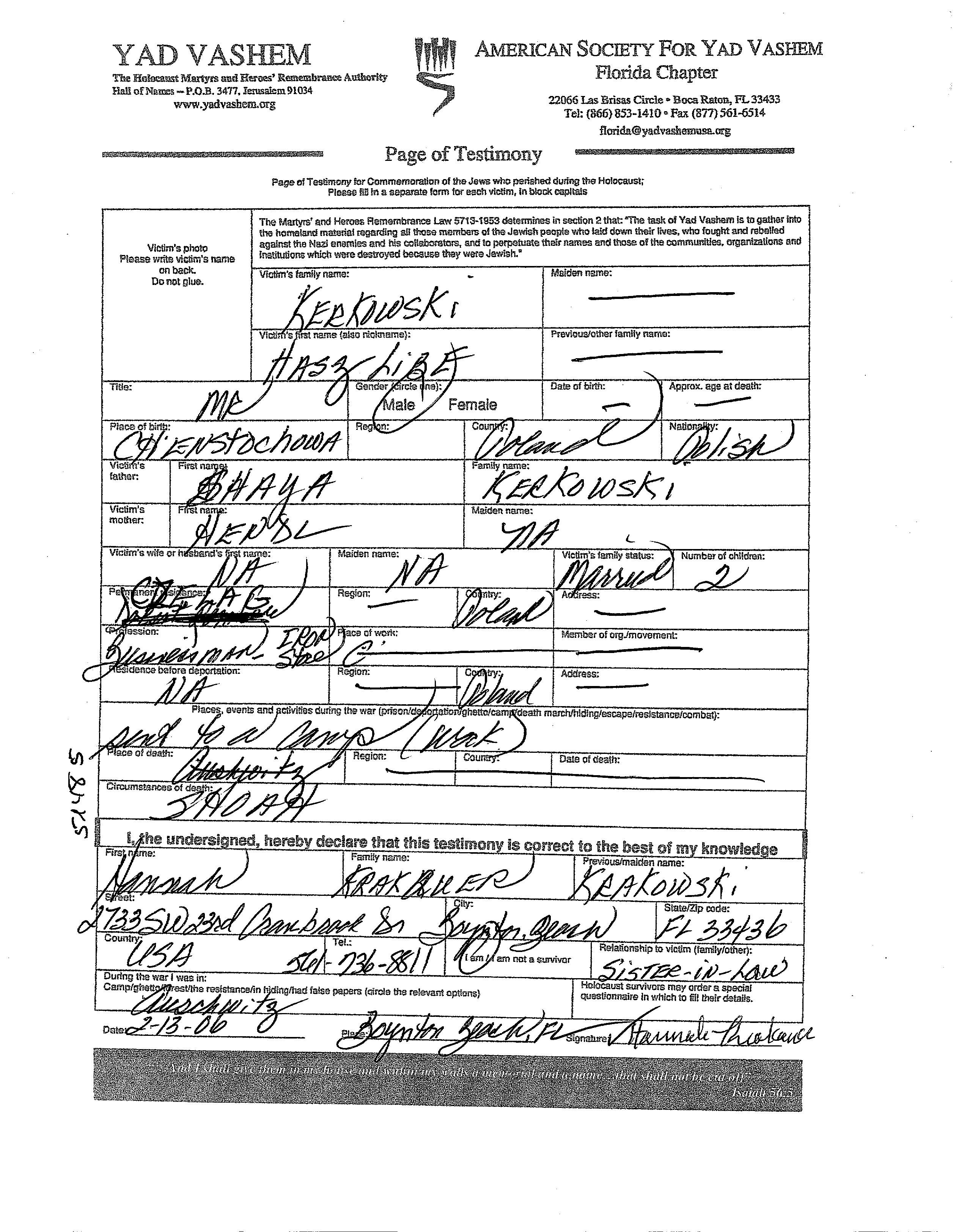 Поиск подателя Листа свидетельских показаний. Поиск по любому имени, включая уменьшительное или прозвище