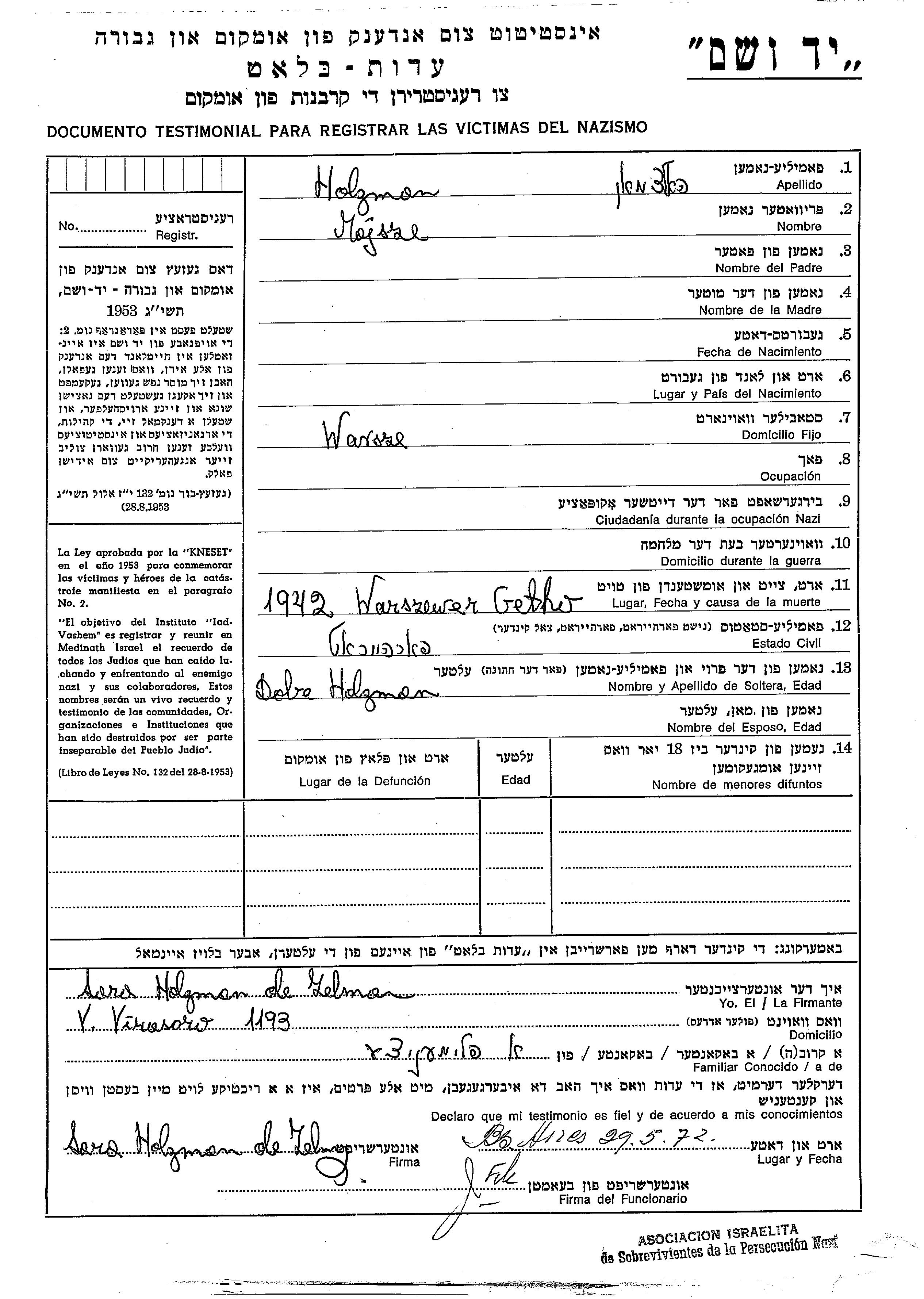 Хольцман Мойше место не указано, Лист свидетельских показаний