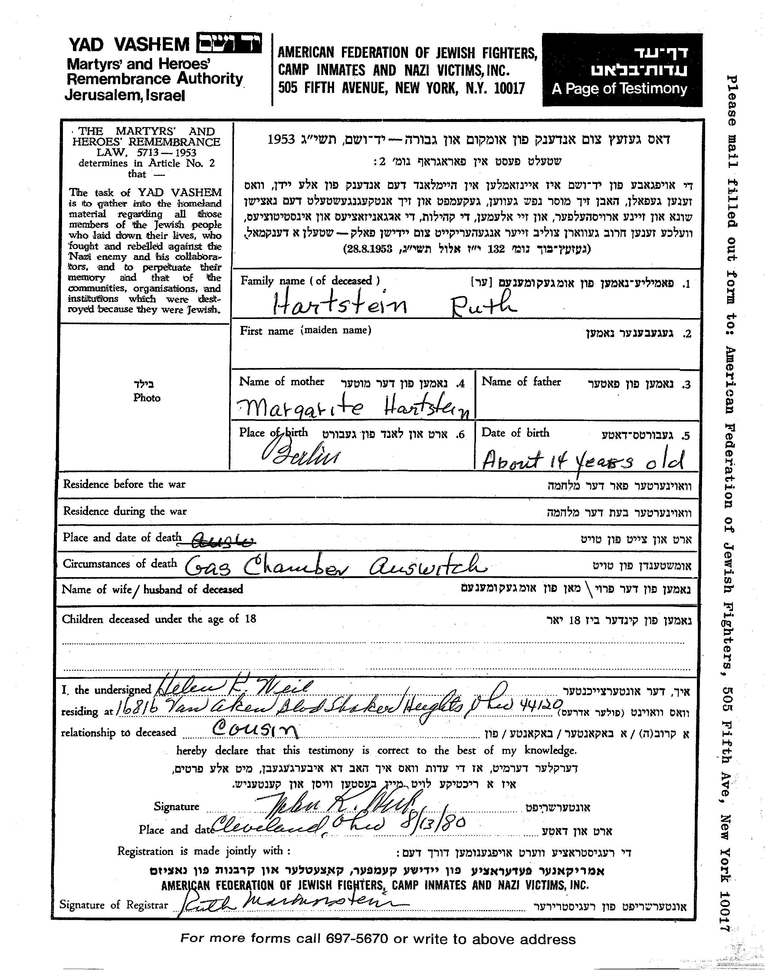 Во время Шоа евреев уничтожали разными способами: газовые камеры, расстрелы, их заживо хоронили или сжигали, непосильным принудительным трудом, голодом, эпидемиями, отсутствием минимальных гигиенических условий и медицинского обслуживания, и т.д. Некоторые евреи добровольно расстались со своей жизнью, чтобы избежать ареста и дальнейших преследований или чтобы покончить с безысходностью и бесконечными страданиями.