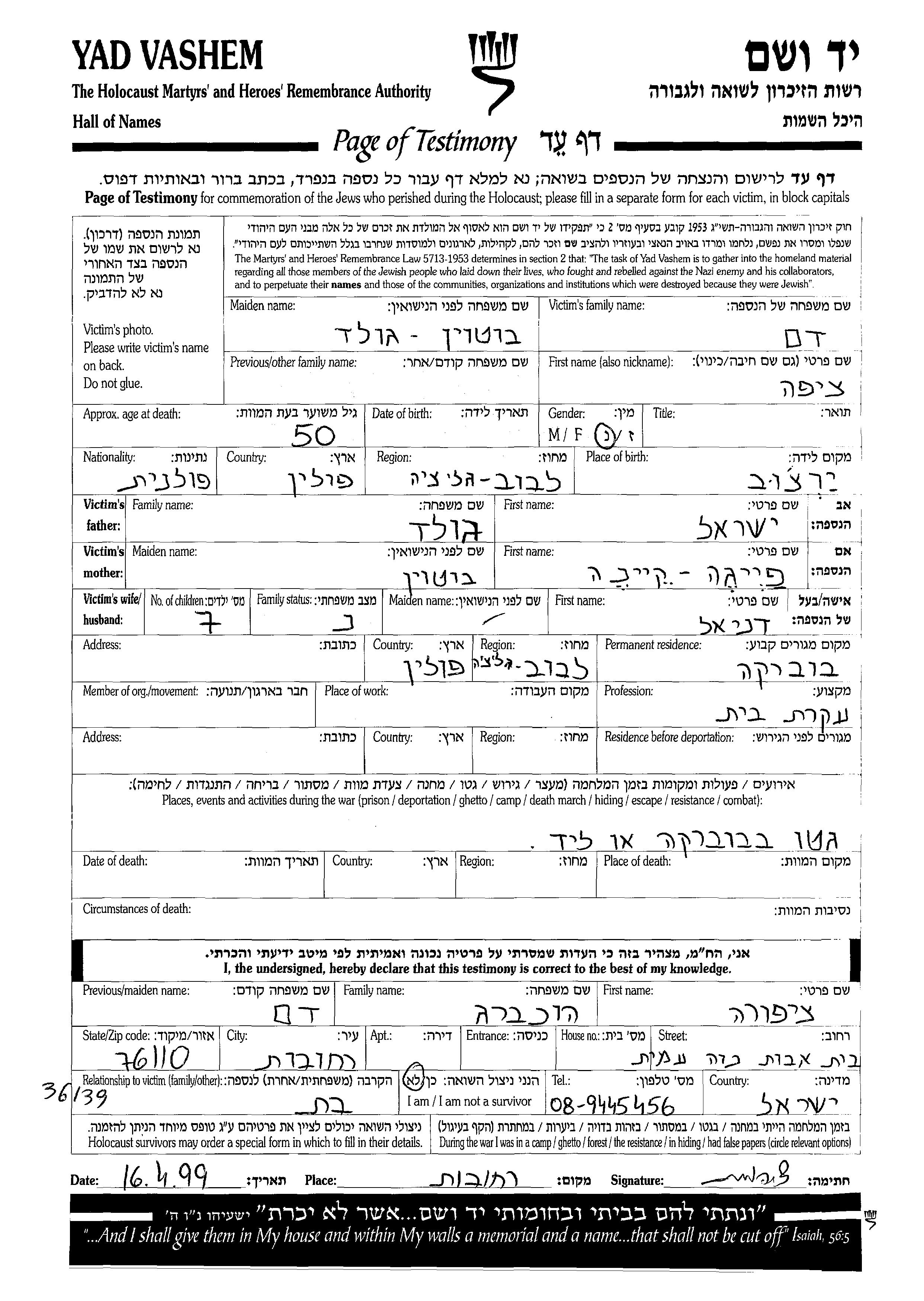 Дам Ципа Бобрка, Польша Лист свидетельских показаний