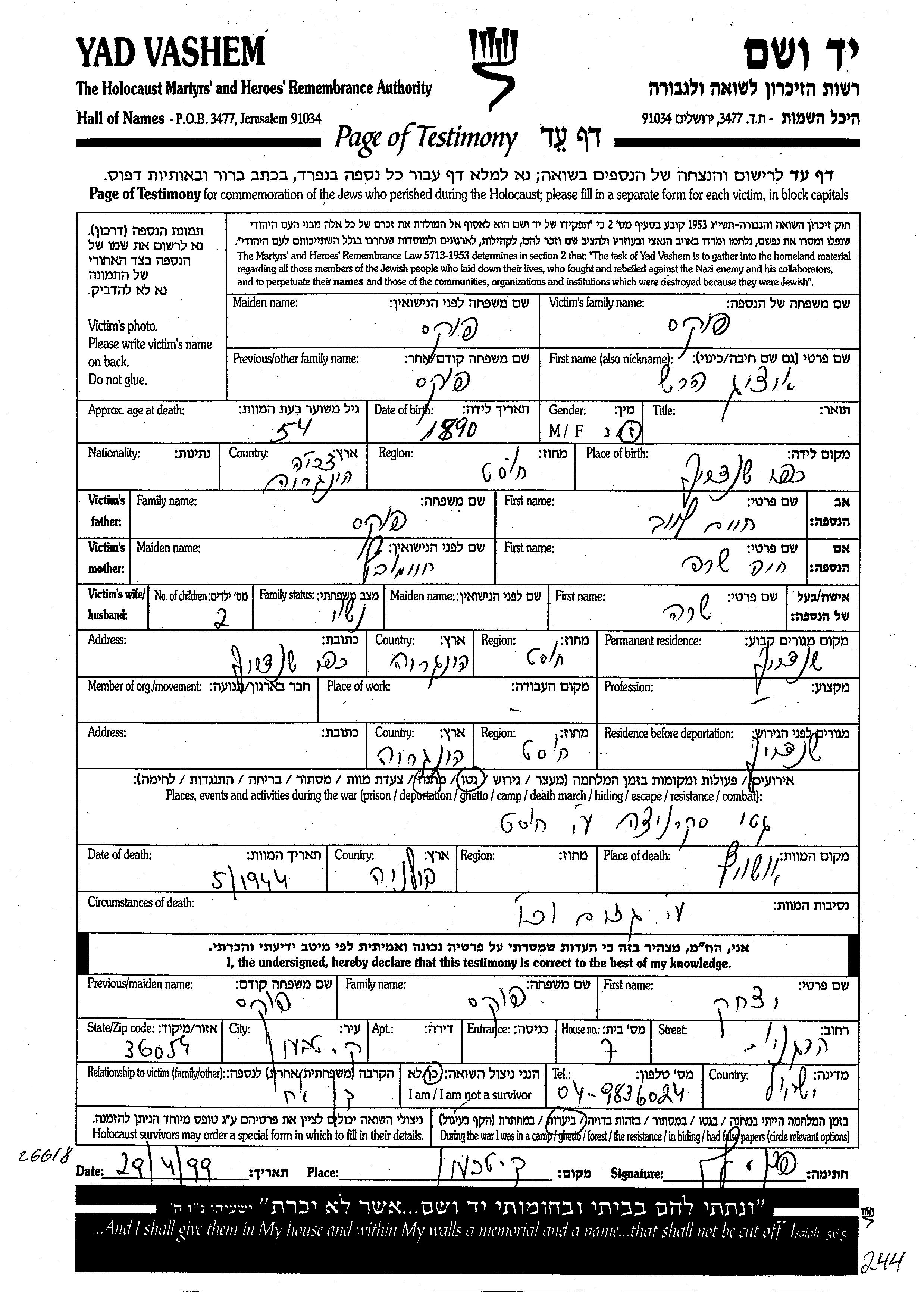 Яд Вашем - Листы свидетельских показаний Мемориального фонда
