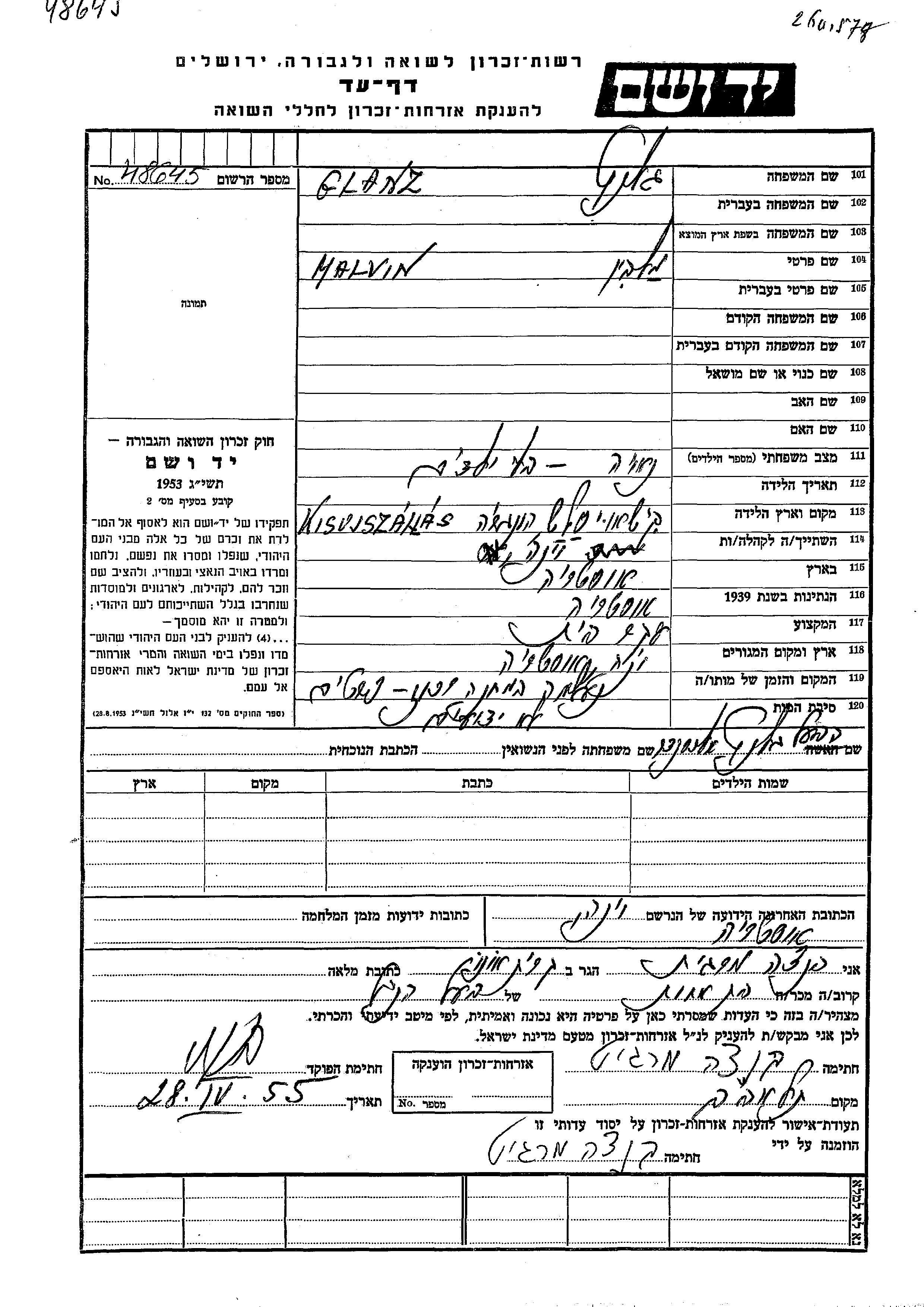 Яд Вашем - Листы свидетельских показаний Мемориального фонда