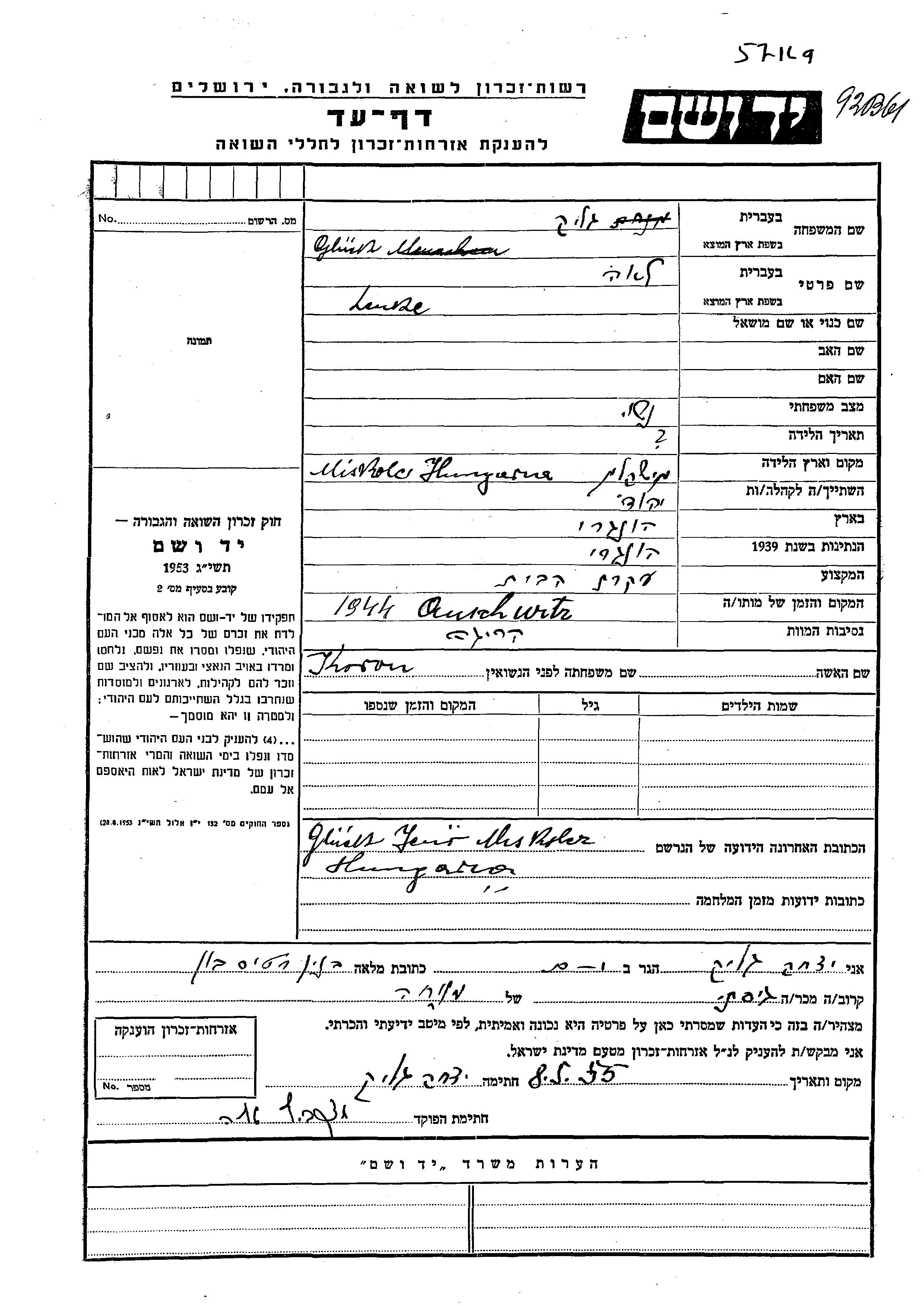 Яд Вашем - Листы свидетельских показаний Мемориального фонда