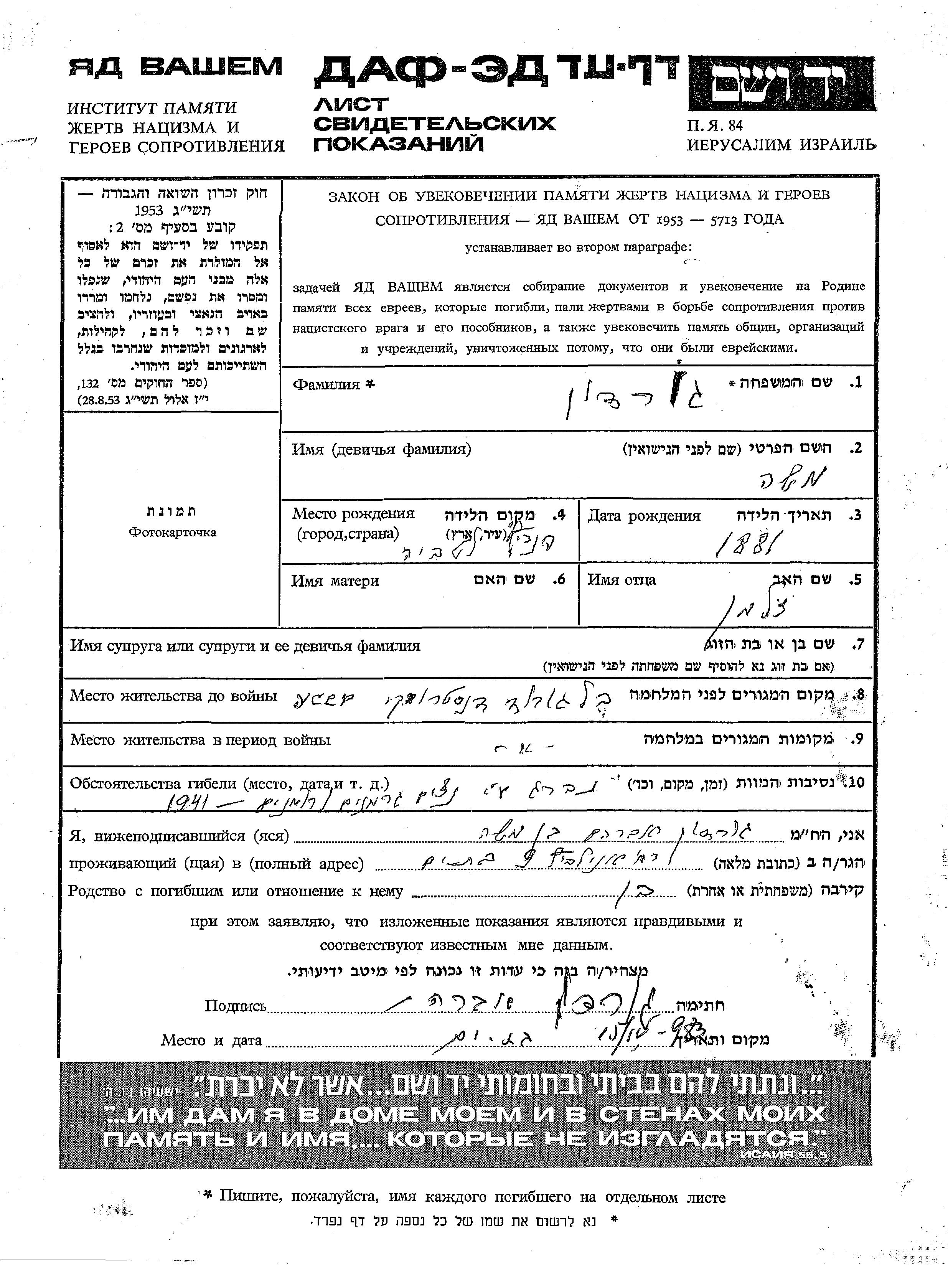 Во время Шоа евреев уничтожали разными способами: газовые камеры, расстрелы, их заживо хоронили или сжигали, непосильным принудительным трудом, голодом, эпидемиями, отсутствием минимальных гигиенических условий и медицинского обслуживания, и т.д. Некоторые евреи добровольно расстались со своей жизнью, чтобы избежать ареста и дальнейших преследований или чтобы покончить с безысходностью и бесконечными страданиями. Десятки тысяч еврейских солдат, служивших в Советской армии и попавших в плен, , были отобраны как евреи и убиты. Многие были зарегистрированы как «пропавшие без вести».