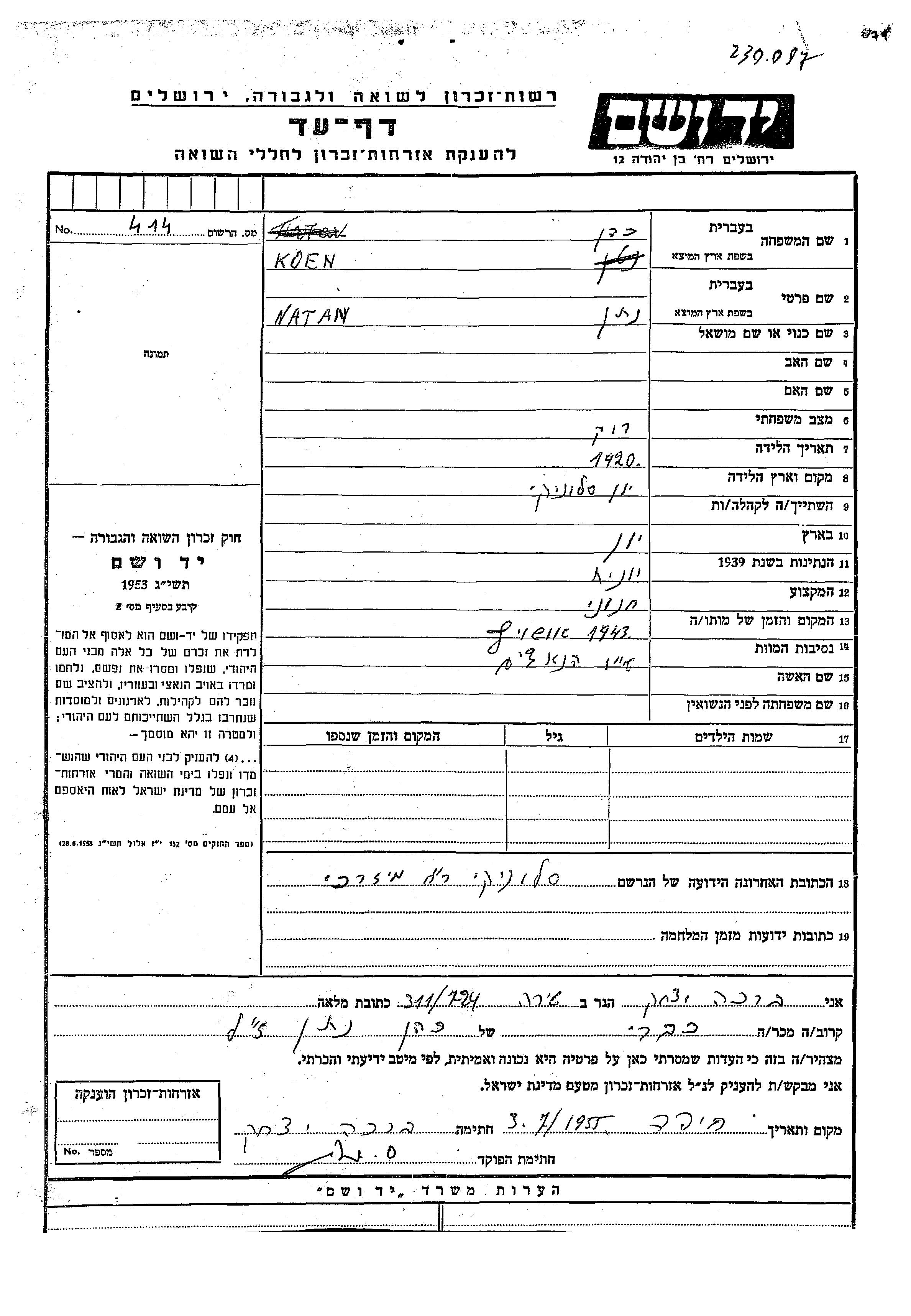 Натан уничтожен в период Шоа. место смерти: Аушвиц, Польша в 1943.
