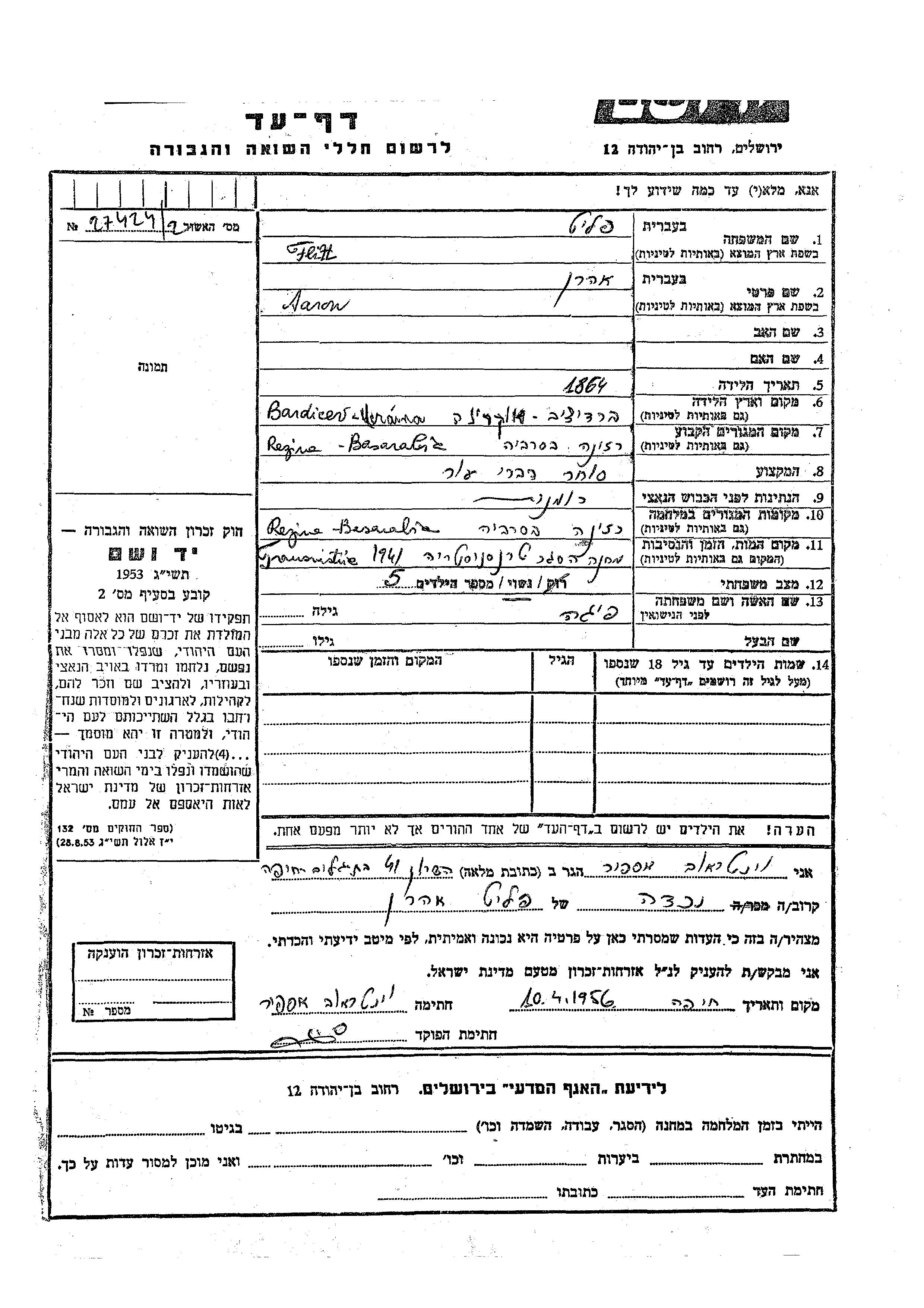 Аарон уничтожен в период Шоа. место смерти: Транснистрия, Украина (СССР) в 1941.