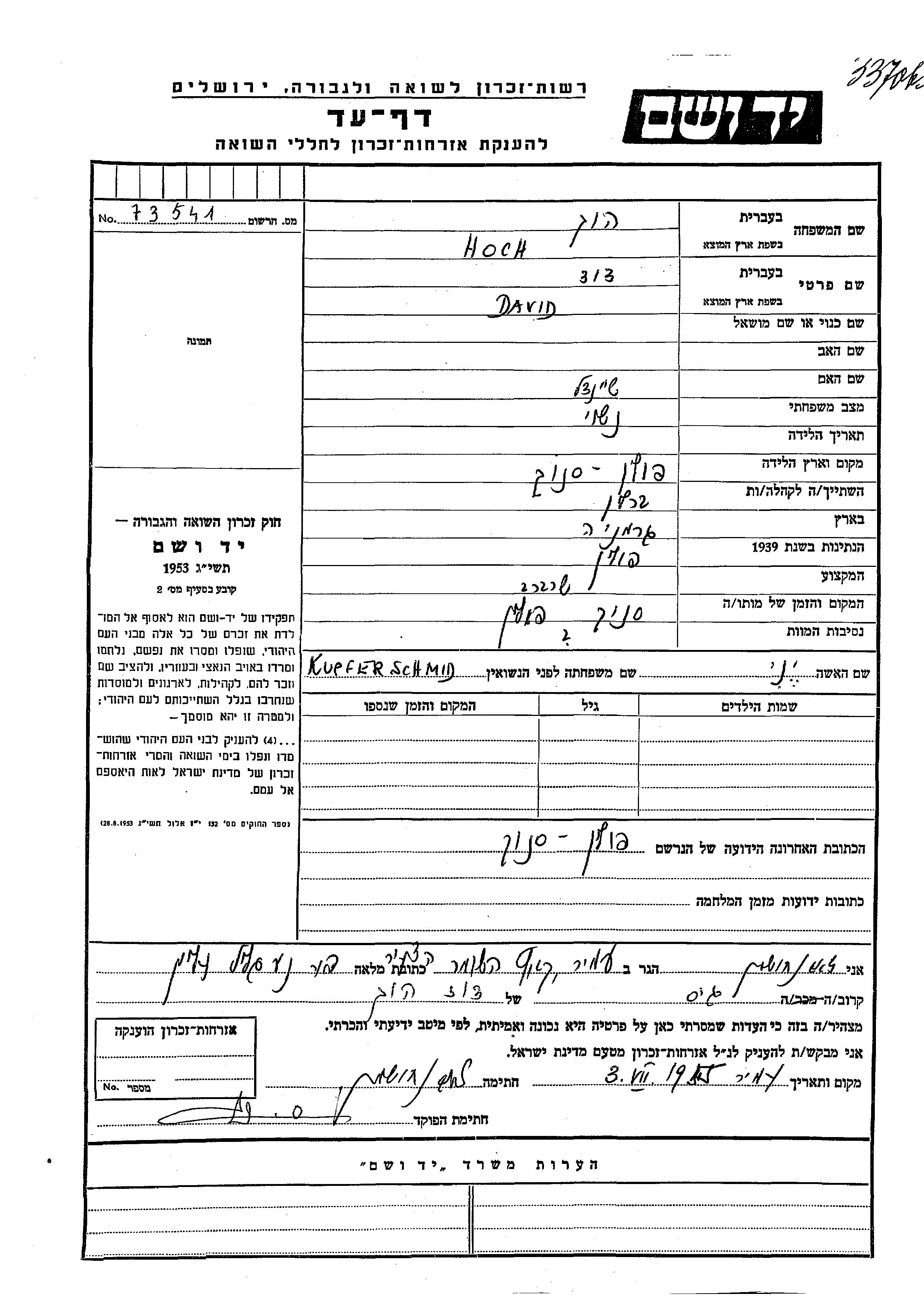 Давид Хох, место рождения: Санок, Польша.Mать:Шейндель. Сантехник.