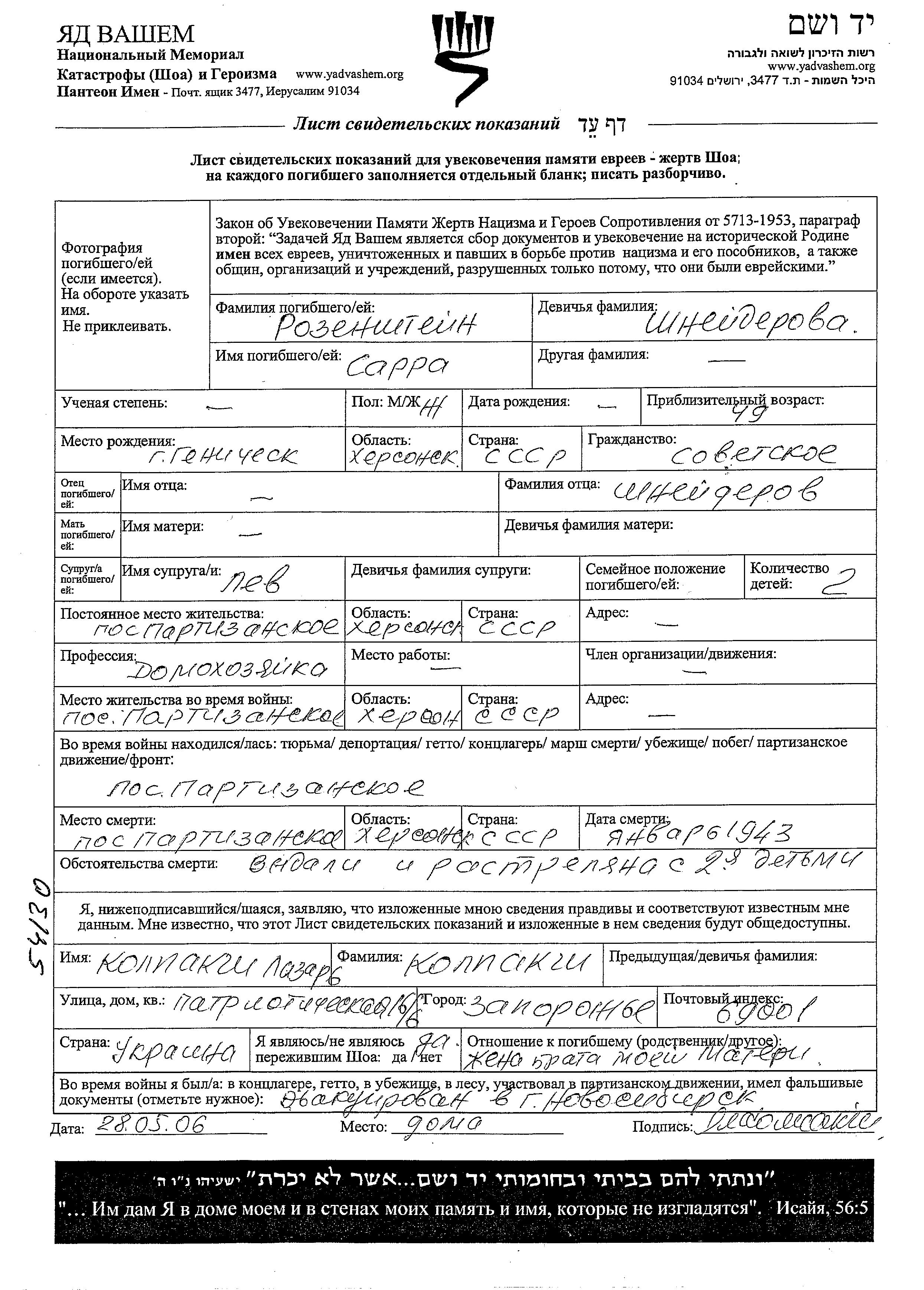 Поиск подателя Листа свидетельских показаний. Поиск по любому имени, включая уменьшительное или прозвище