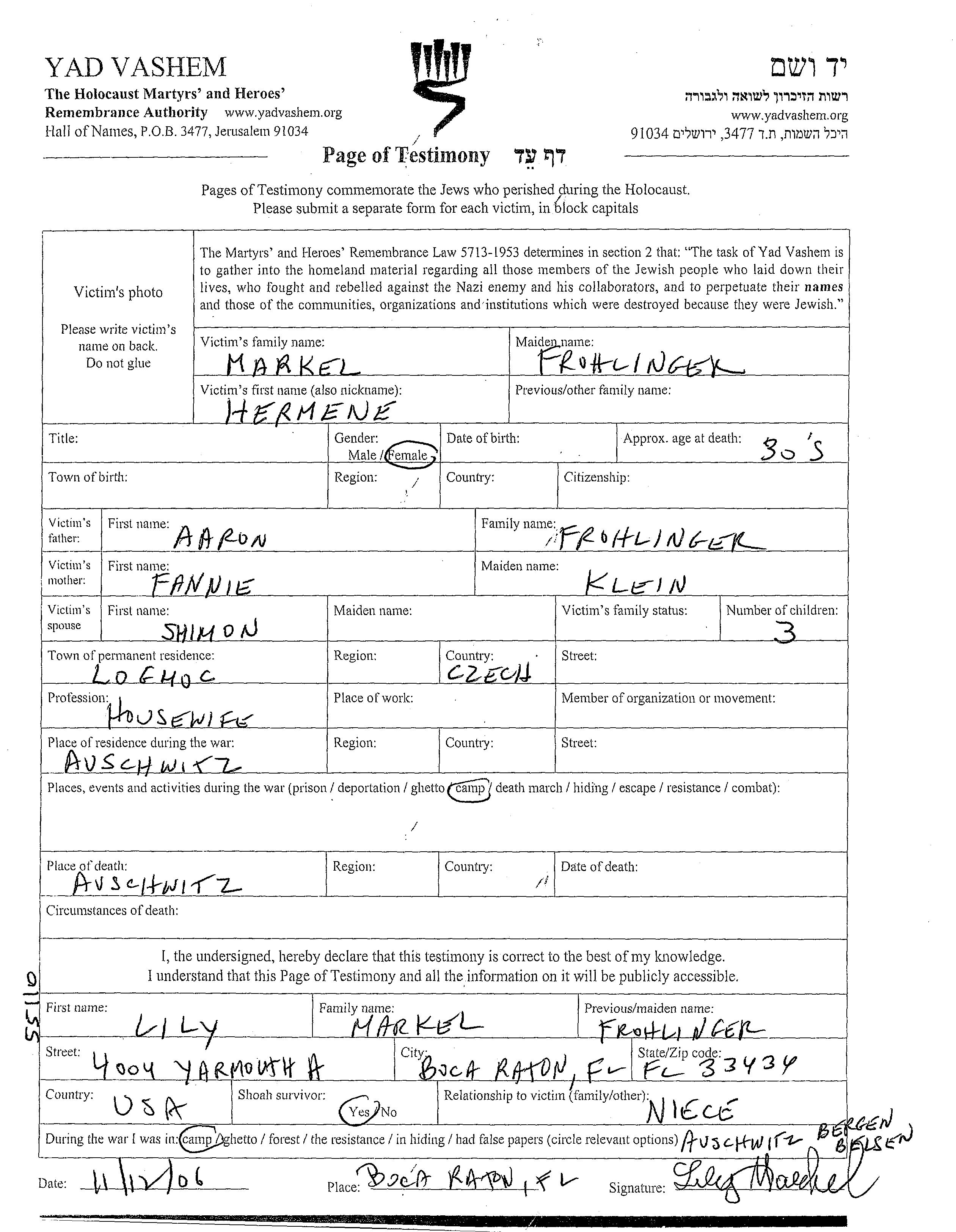 Хермене уничтоженa в период Шоа. место смерти: Аушвиц, Польша.