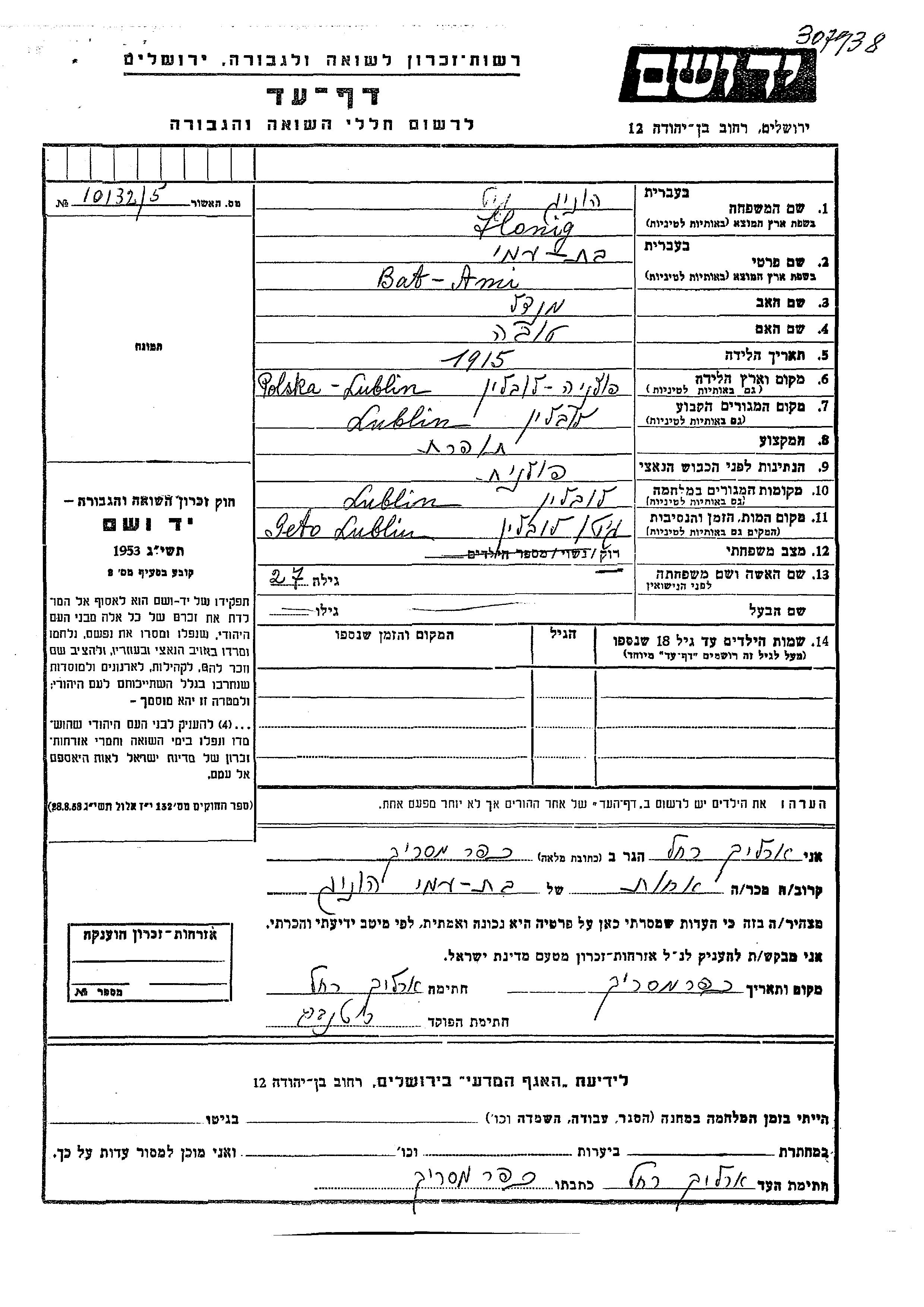 Бат Ами уничтоженa в период Шоа. место смерти: Люблин, Польша.