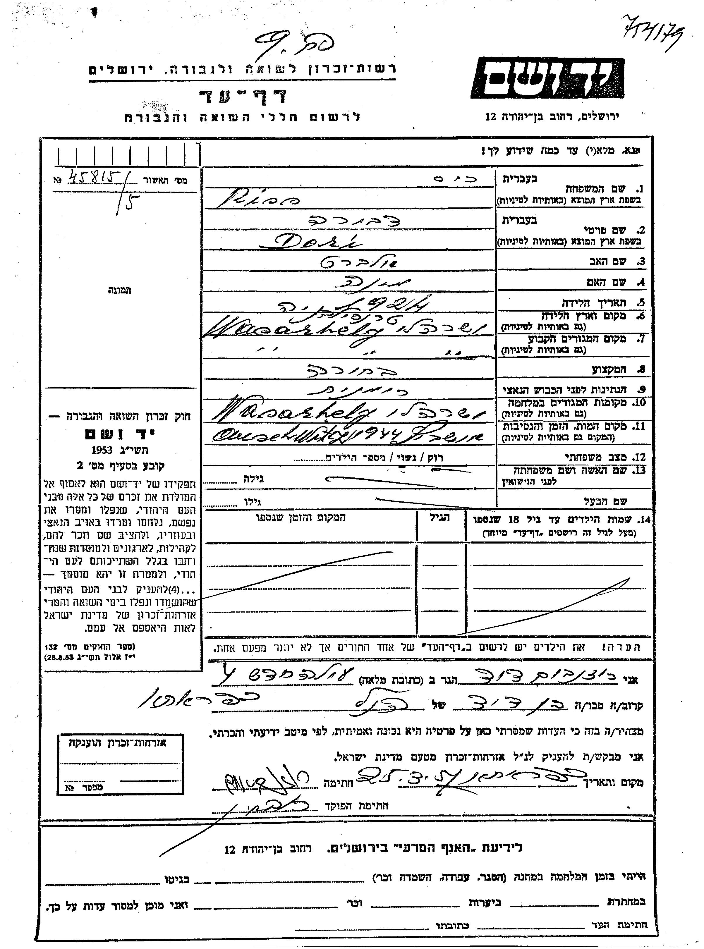 Рисс Дори Двора 1924 Вашархей, Румыния Лист свидетельских показаний