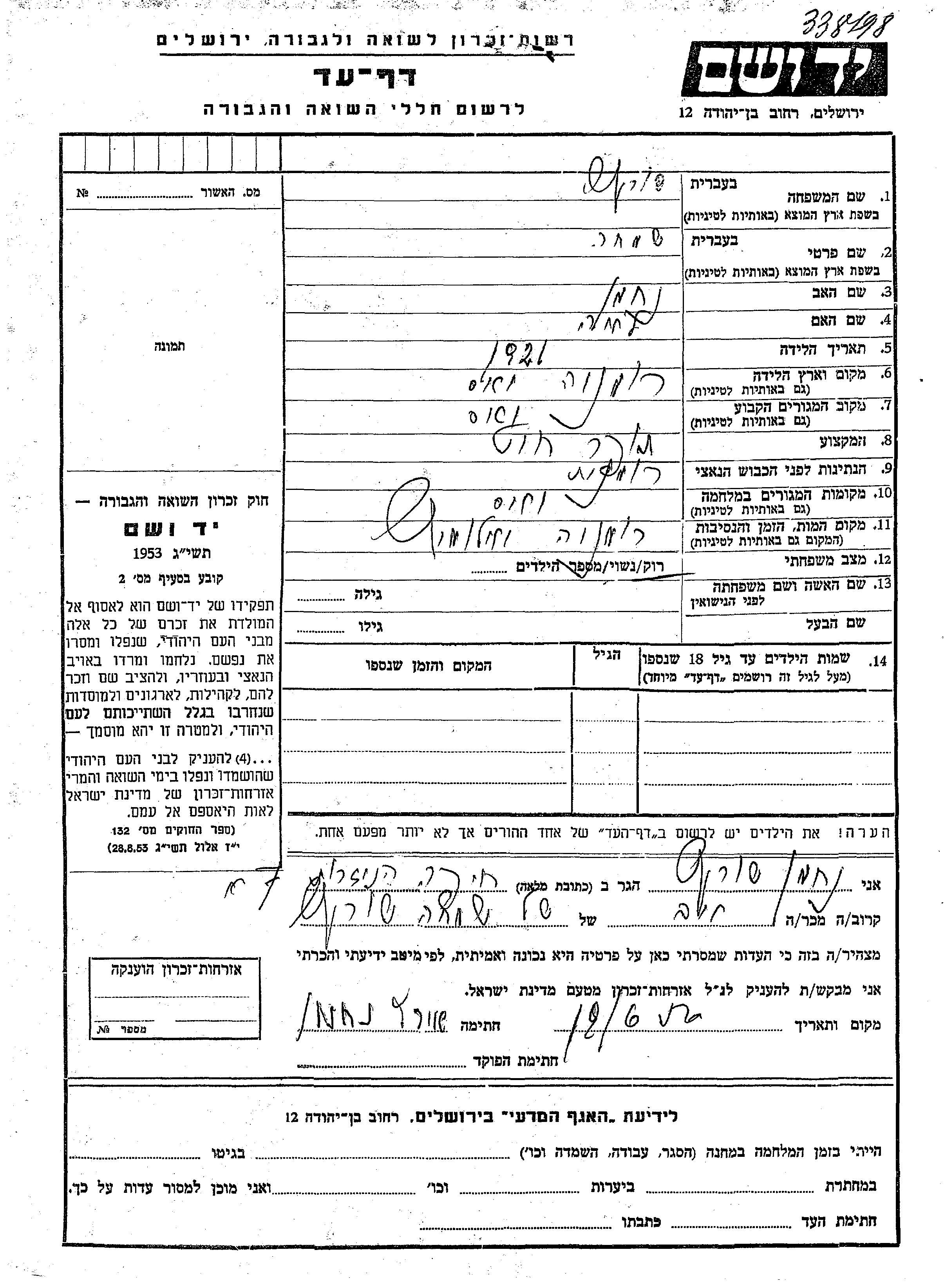 Яд Вашем - Листы свидетельских показаний Мемориального фонда