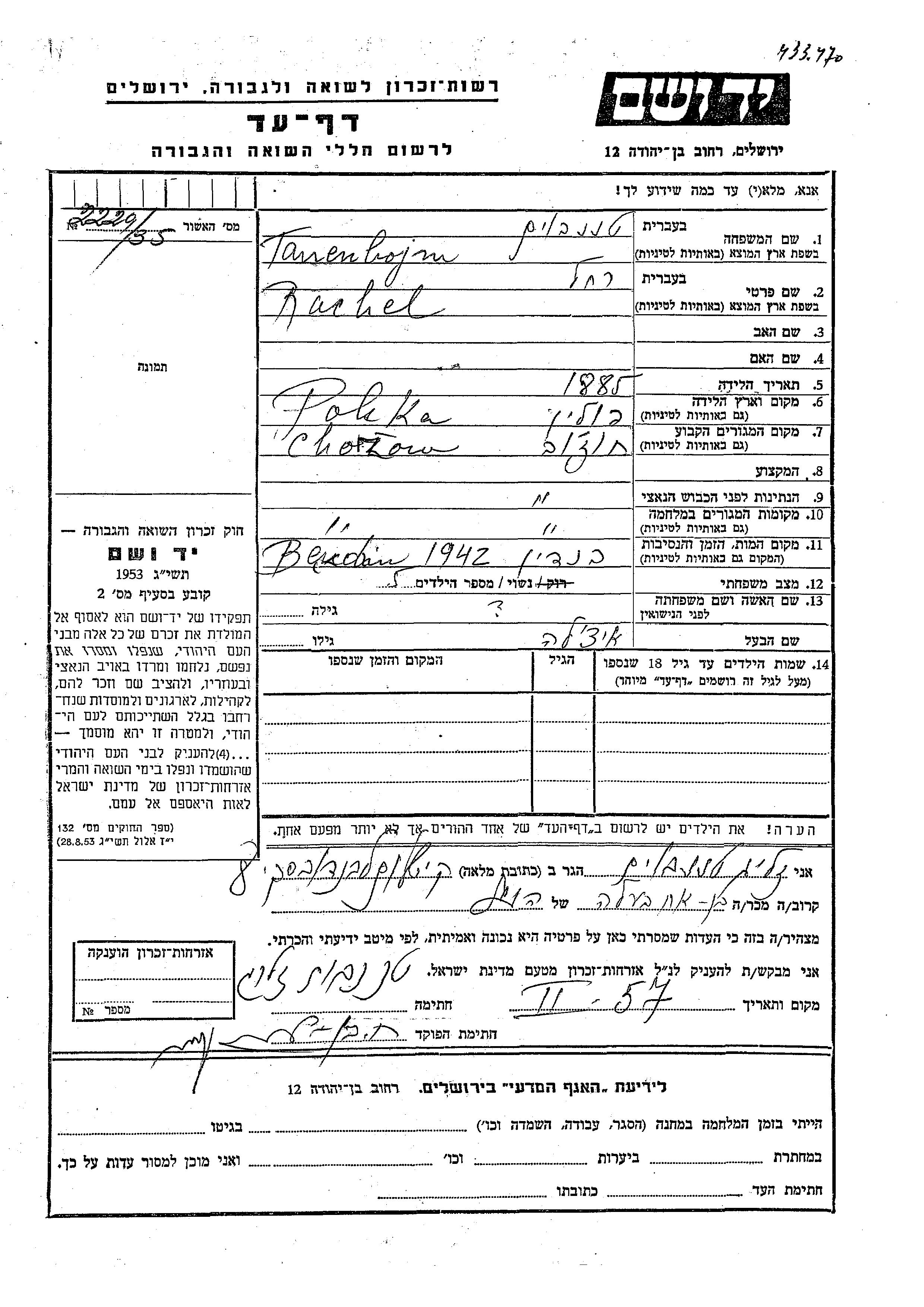 Яд Вашем - Листы свидетельских показаний Мемориального фонда