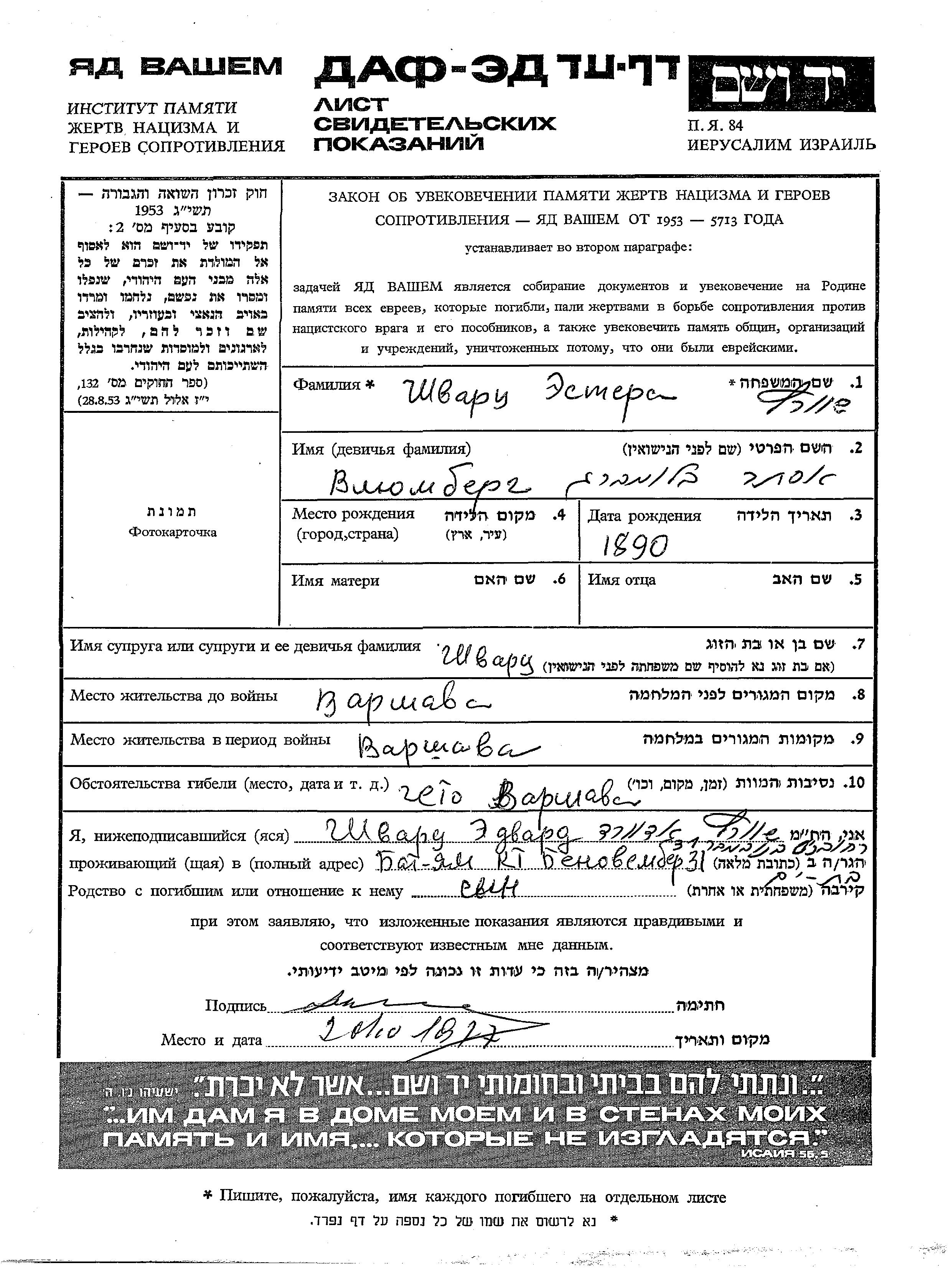 Во время Шоа евреев уничтожали разными способами: газовые камеры, расстрелы, их заживо хоронили или сжигали, непосильным принудительным трудом, голодом, эпидемиями, отсутствием минимальных гигиенических условий и медицинского обслуживания, и т.д. Некоторые евреи добровольно расстались со своей жизнью, чтобы избежать ареста и дальнейших преследований или чтобы покончить с безысходностью и бесконечными страданиями. Десятки тысяч еврейских солдат, служивших в Советской армии и попавших в плен, , были отобраны как евреи и убиты. Многие были зарегистрированы как «пропавшие без вести».