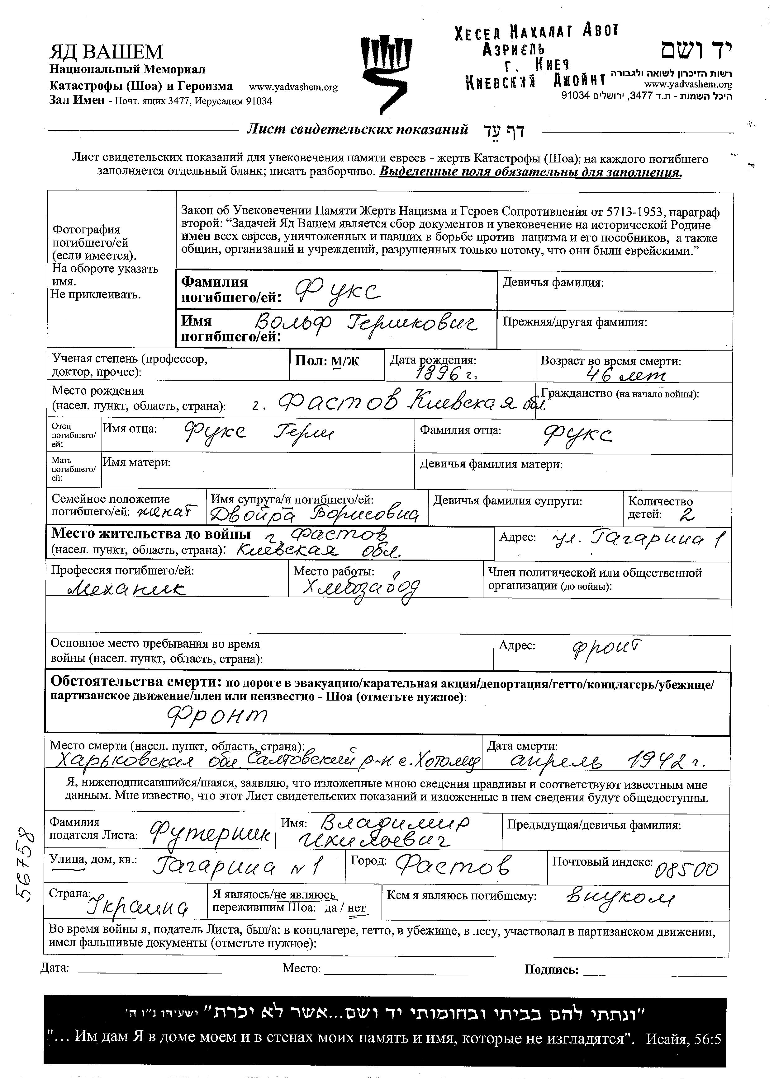 Поиск подателя Листа свидетельских показаний. Поиск по любому имени, включая уменьшительное или прозвище