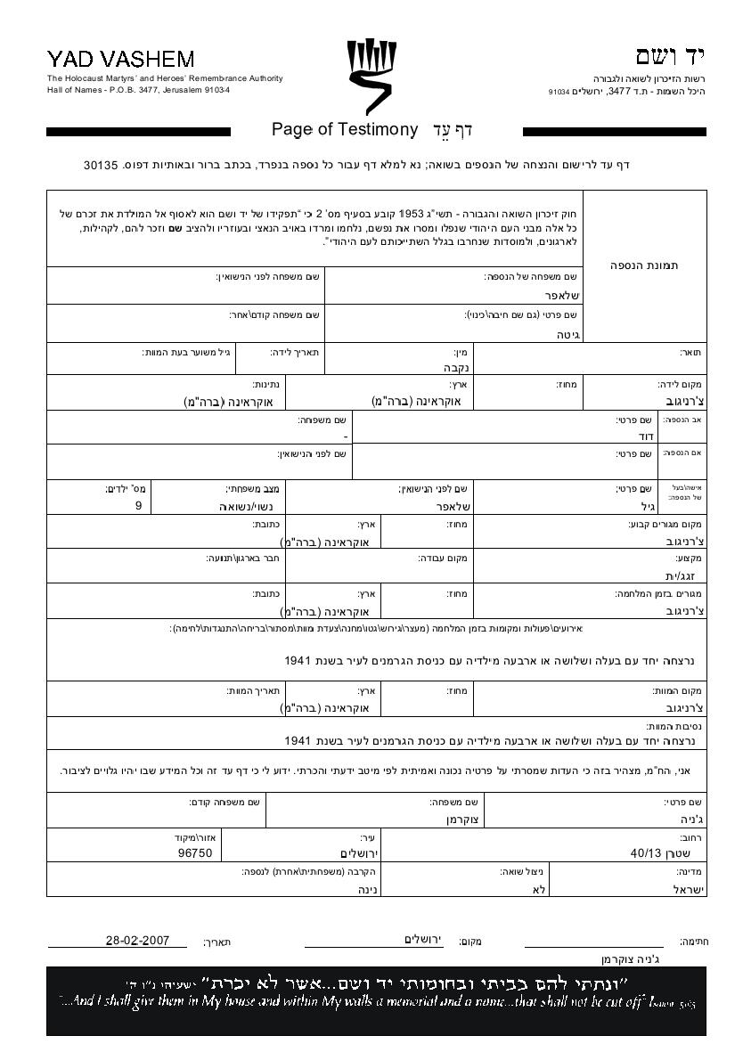 Яд Вашем - Листы свидетельских показаний Мемориального фонда