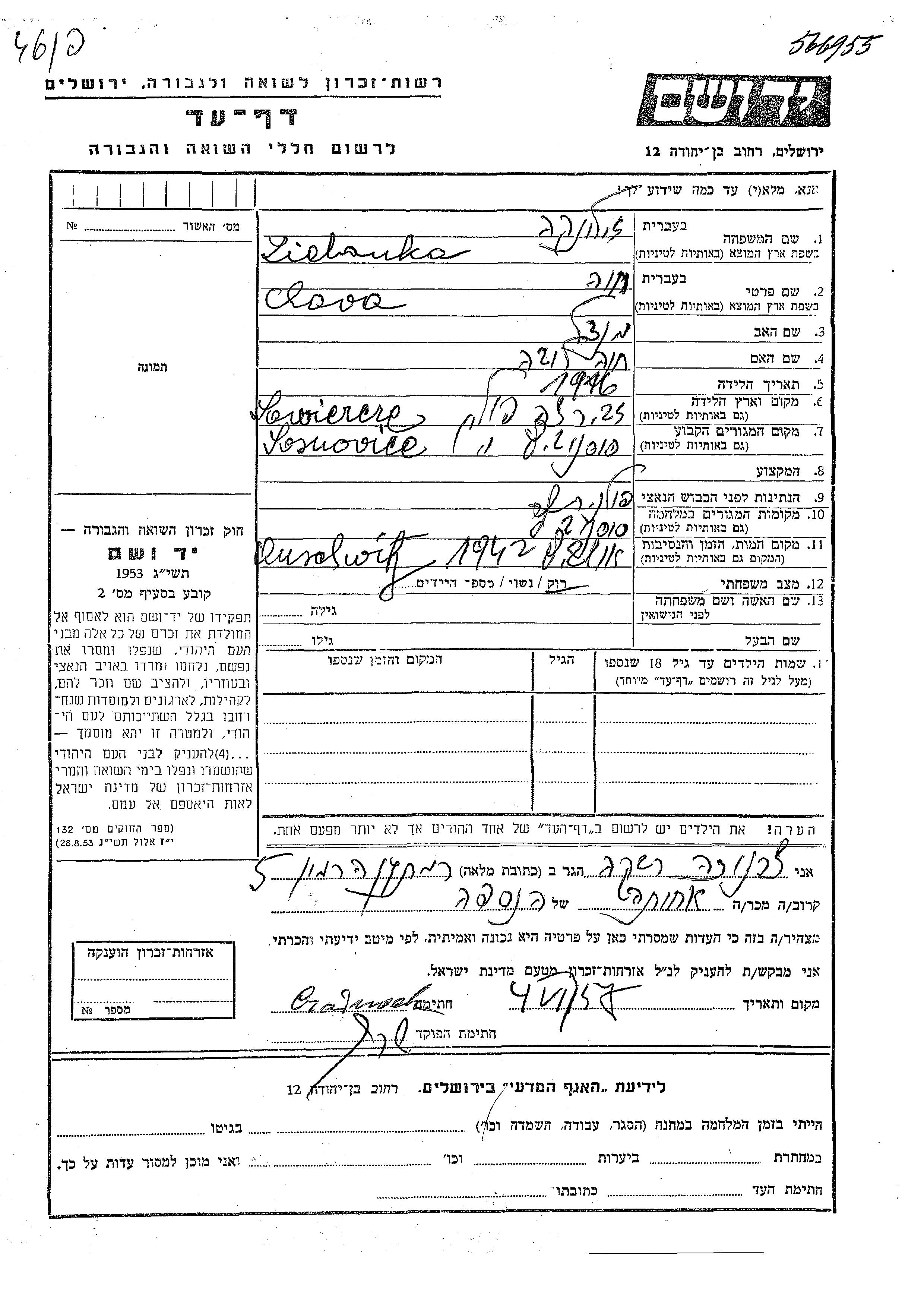 Яд Вашем - Листы свидетельских показаний Мемориального фонда