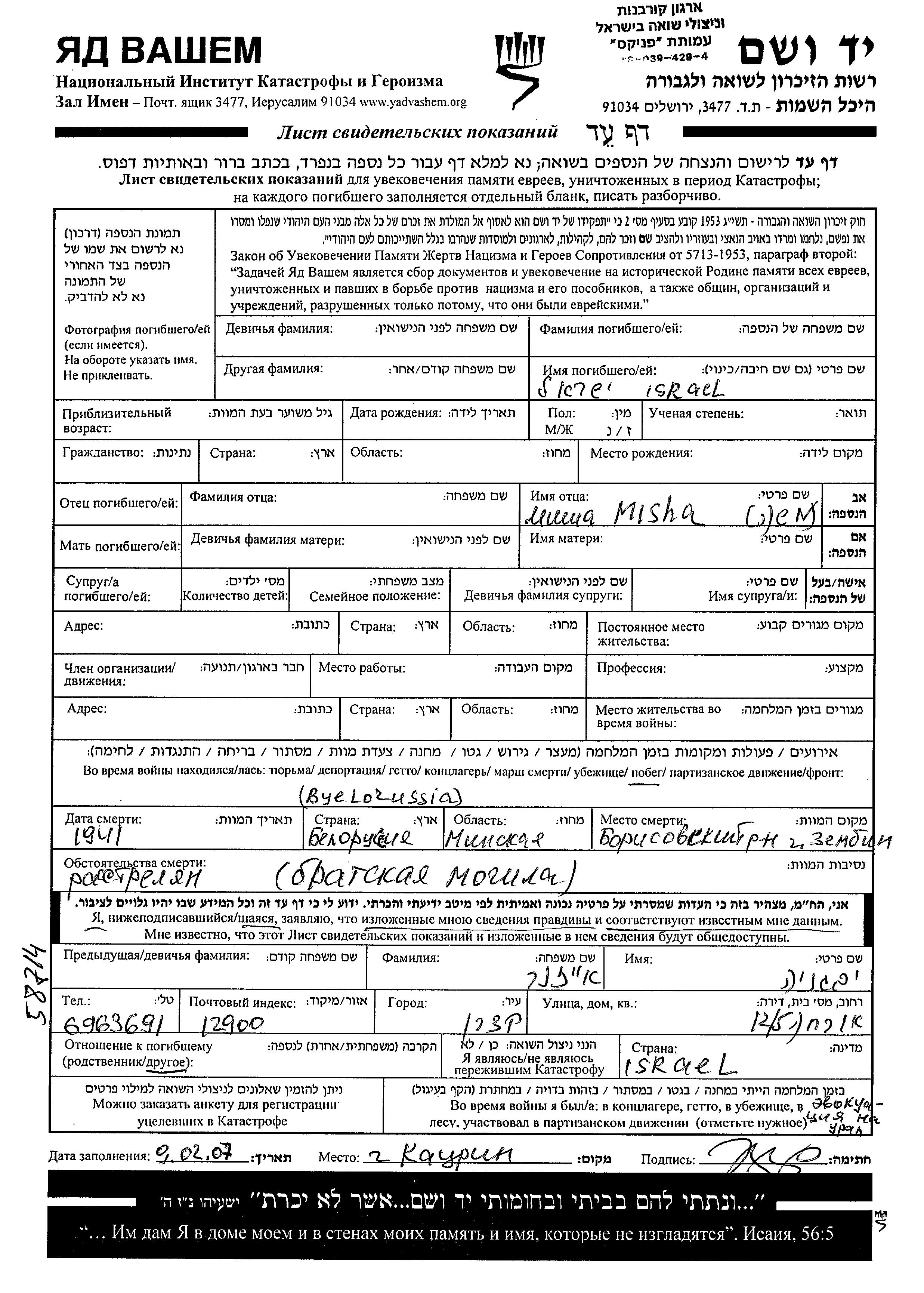 Поиск подателя Листа свидетельских показаний. Поиск по любому имени, включая уменьшительное или прозвище